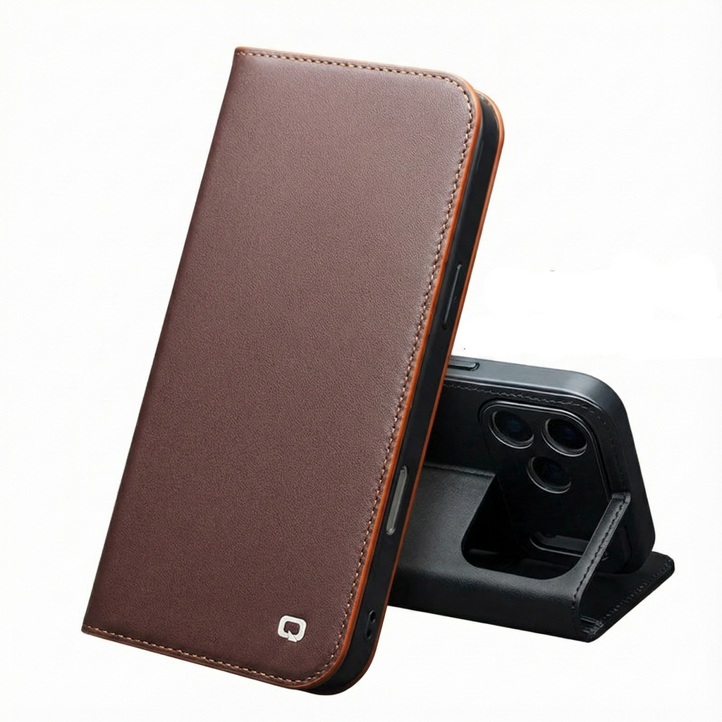 This high-quality flip case was specially designed for the iPhone 17, iPhone 17 Pro, and iPhone 17 Pro Max, and impresses with its combination of elegance, functionality, and protection. Crafted from genuine leather, it offers a comfortable grip and a stylish look for both business and everyday use. The understated design highlights the natural leather texture and gives the device a professional appearance.