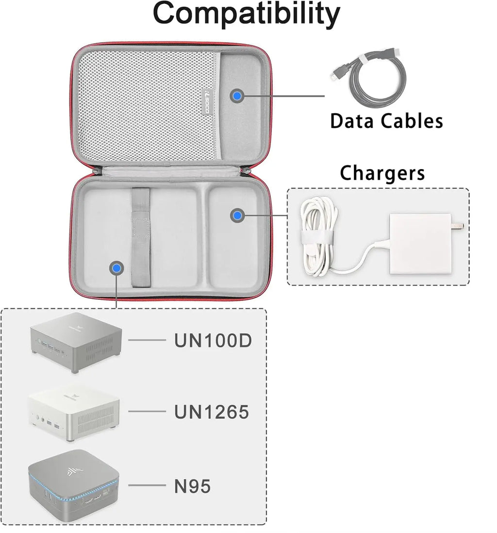 Diese hochwertige Hardcase Schutztasche aus EVA- und 1680D-Material wurde speziell für Mini PCs wie den Nucbox K8 Plus und kompatible Modelle entwickelt. Mit präzisen Aussparungen für Mini PCs und Zubehör schützt sie Ihre Geräte zuverlässig vor Stossen, Stuerzen, Druck, Wasser, Staub und Schmutz.