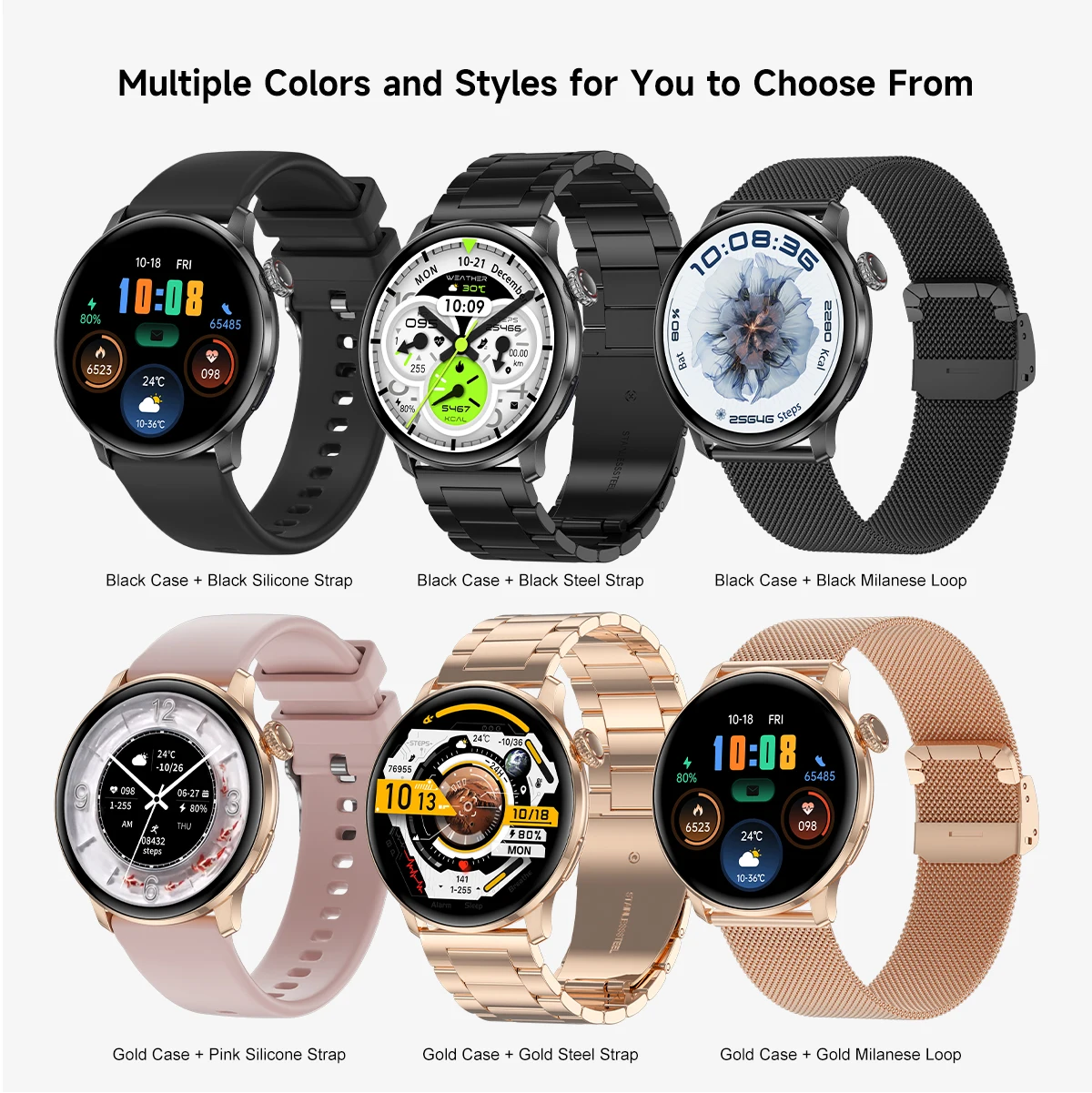 Diese elegante und vielseitige Smartwatch aus Edelstahl ist ideal für Erwachsene, die Wert auf Stil und Funktionalität legen. Mit einem hochwertigen 1,43 Zoll großen AMOLED-Rundbildschirm und einer Auflösung von 454 x 454 Pixeln bietet sie klare und scharfe Anzeigen. Das Armband aus Silikongel ist abnehmbar und mit einer Länge von 240 mm und einer Breite von 22 mm angenehm zu tragen.
