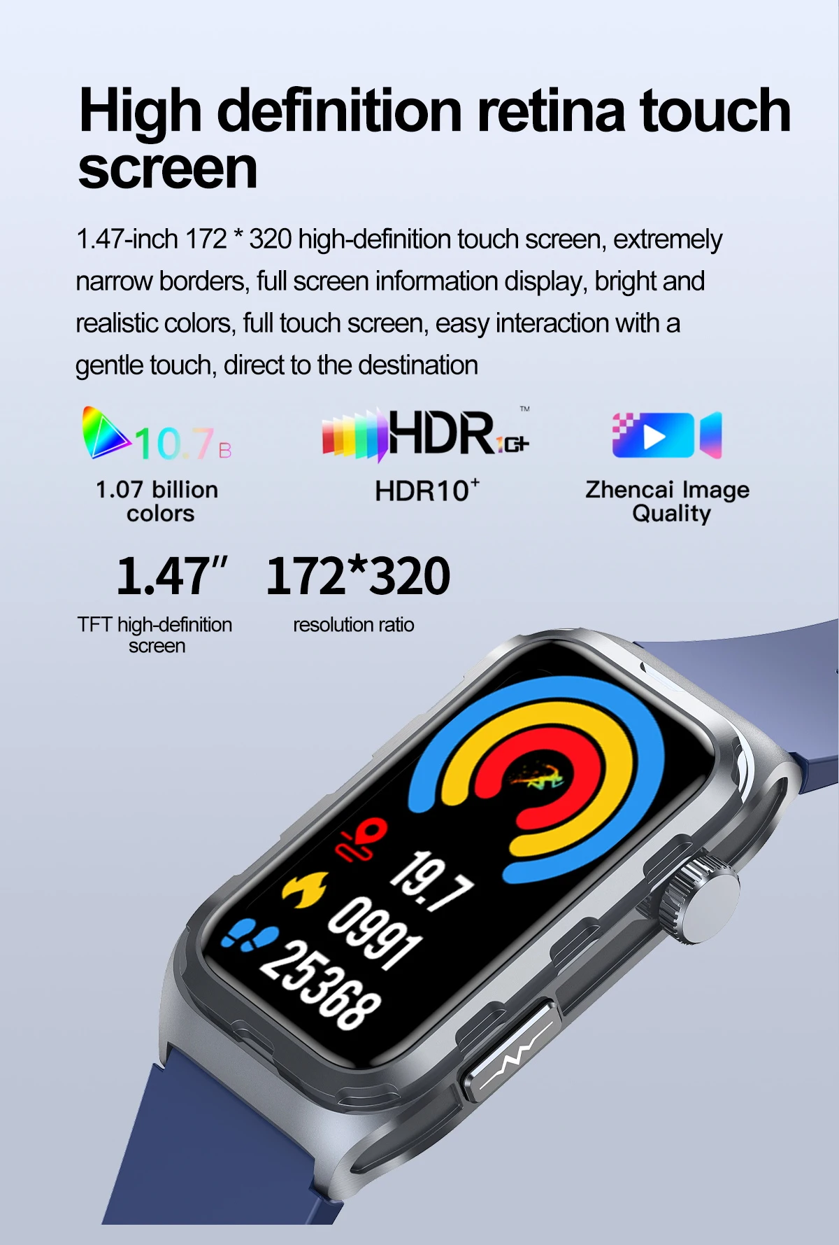 Diese Smartwatch 2025 bietet modernste Gesundheitsfunktionen in einem eleganten und robusten Design. Ausgestattet mit einem 1,47 Zoll HD-AMOLED-Touchscreen und einem kratzfesten Saphirglas, liefert sie klare und scharfe Anzeigen. Der hochwertige Gehäusematerial aus Edelmetallen sorgt für eine edle Optik und Langlebigkeit.