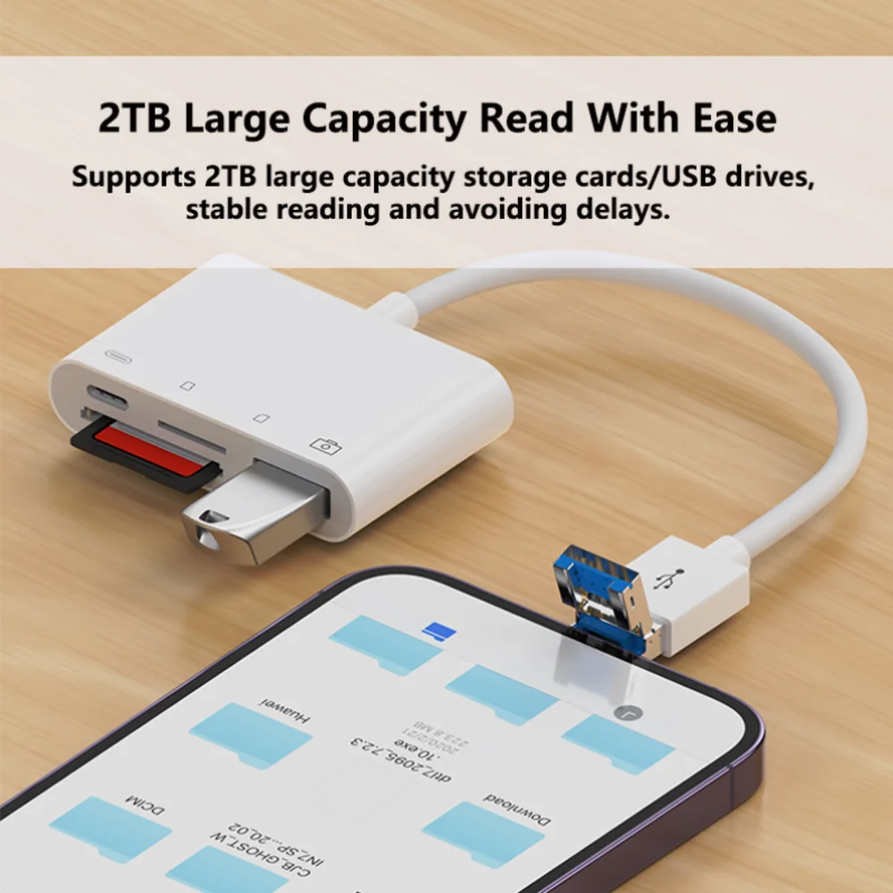 Der Adapter unterstützt OTG-Funktionalität, sodass er auch mit kompatiblen Android-Geräten verwendet werden kann. Er ist ideal für Fotografen, die Bilder von Kameras direkt auf iPhone oder iPad übertragen möchten, für Geschäftsreisende, die große Dateien schnell sichern müssen, oder für jeden, der unterwegs Daten zwischen Geräten austauschen möchte. Das Plug-and-Play-Design erfordert keine zusätzliche Software und macht die Nutzung besonders einfach.