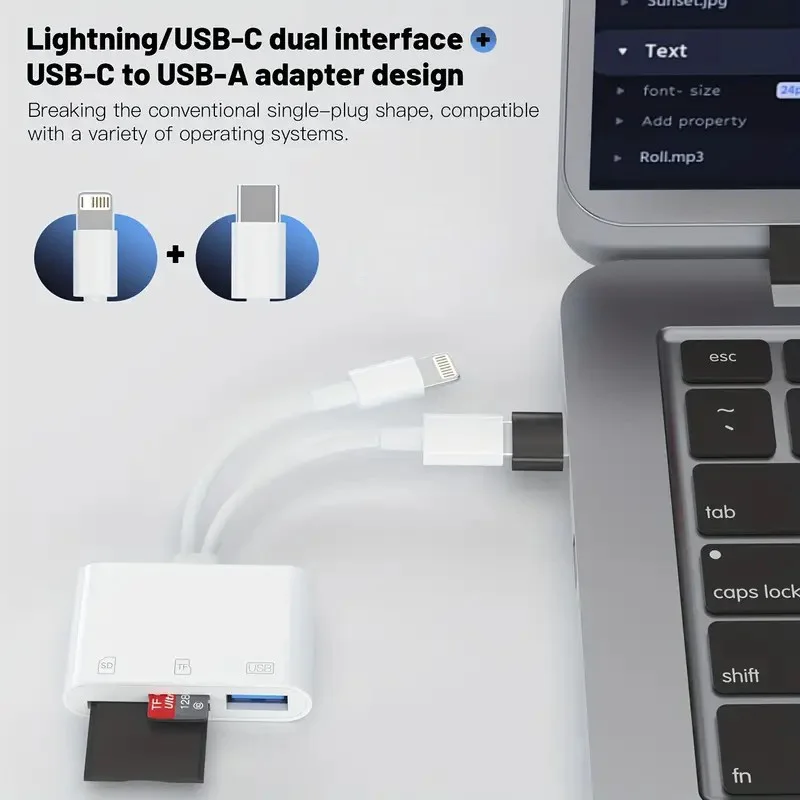 Der Kartenleser ist ideal für iPhone, iPad, MacBook, Huawei, Samsung und Xiaomi Geräte. Er ermöglicht einfaches Lesen und Schreiben von Speicherkarte-Daten, Backup wichtiger Dateien oder schnellen Zugriff auf Fotos, Videos und Dokumente. Dank seines portablen Designs kann er problemlos unterwegs verwendet werden.