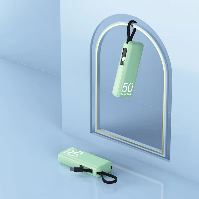 Die Mussels 5000mAh tragbare Powerbank ist ein kompakter und leistungsstarker Begleiter für unterwegs. Mit ihrem integrierten Kabel bietet sie ein sofort einsatzbereites Ladeerlebnis ohne zusätzliches Zubehör. Dank des schlanken, kapselartigen Designs und der Mini-Größe (85 x 35 x 24 mm) passt sie problemlos in jede Tasche oder sogar an den Schlüsselbund durch das praktische Lanyard.