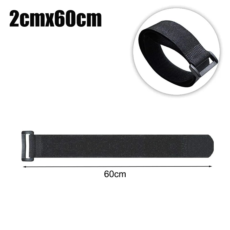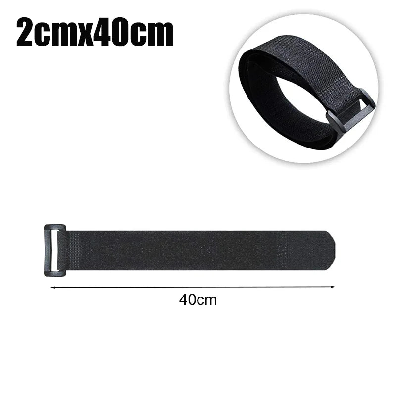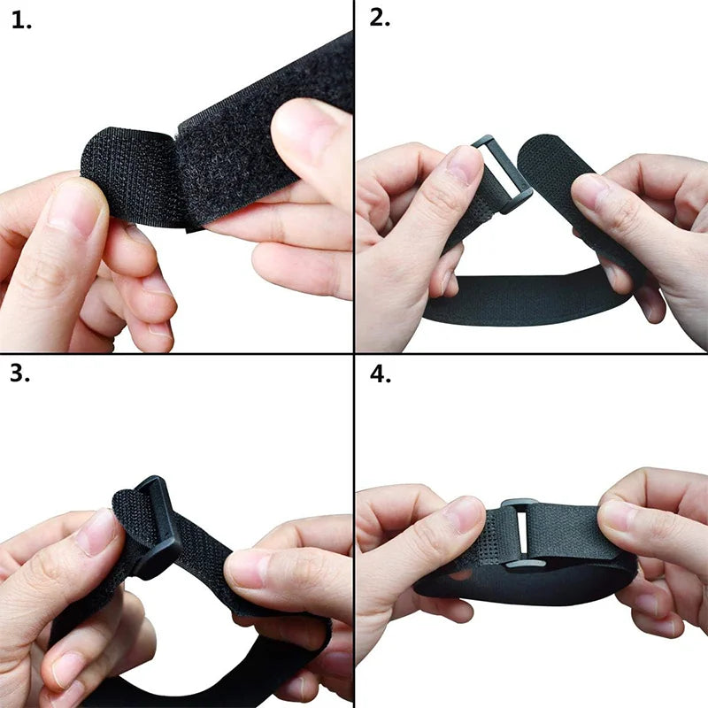 Die Handhabung ist besonders einfach. Die Riemen lassen sich leicht anziehen, entfernen und anpassen. Einfach den Klettverschluss öffnen, den Riemen um die Gegenstände wickeln, durch den Haken führen, straffziehen und den Verschluss sichern.