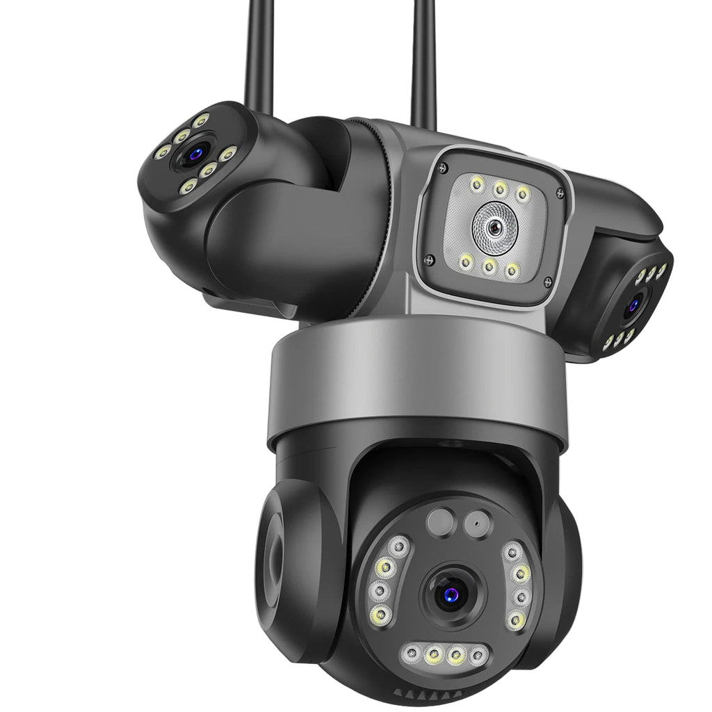 Die 6K 12MP HD WiFi IP Kamera bietet fortschrittliche Sicherheitsfunktionen für den Innen- und Außenbereich. Ausgestattet mit drei Bildschirmen und einem Dual-Objektiv liefert sie gestochen scharfe Bilder in hoher Auflösung. Die Kamera unterstützt eine 360°-Rundumsicht durch Pan- und Neigefunktionen (0°–360°), sowie einen 4-fachen digitalen Zoom, mit dem Sie Details aus der Ferne genau erkennen können. Dank der IP66-Zertifizierung ist sie wetterfest und eignet sich ideal für den Außeneinsatz, auch bei schwierigen Wetterbedingungen.