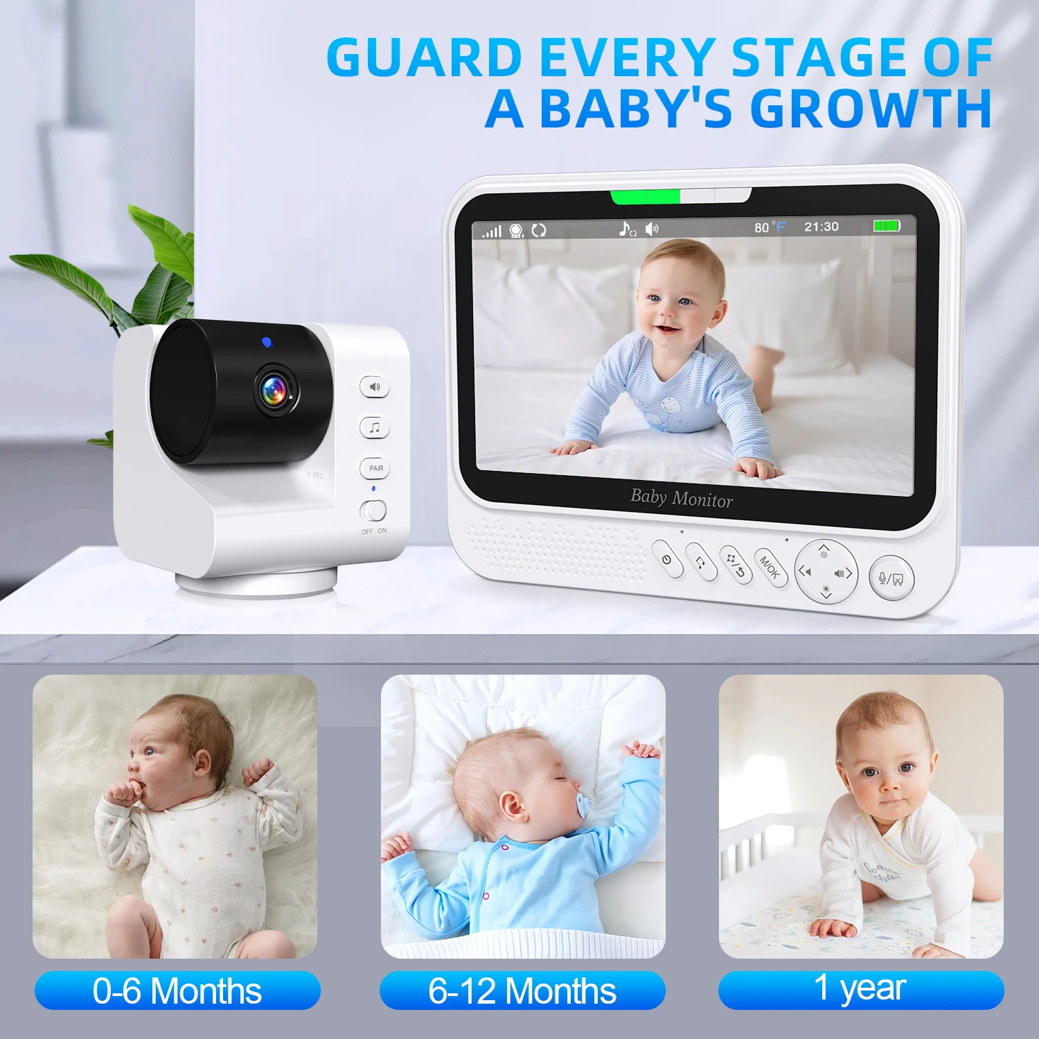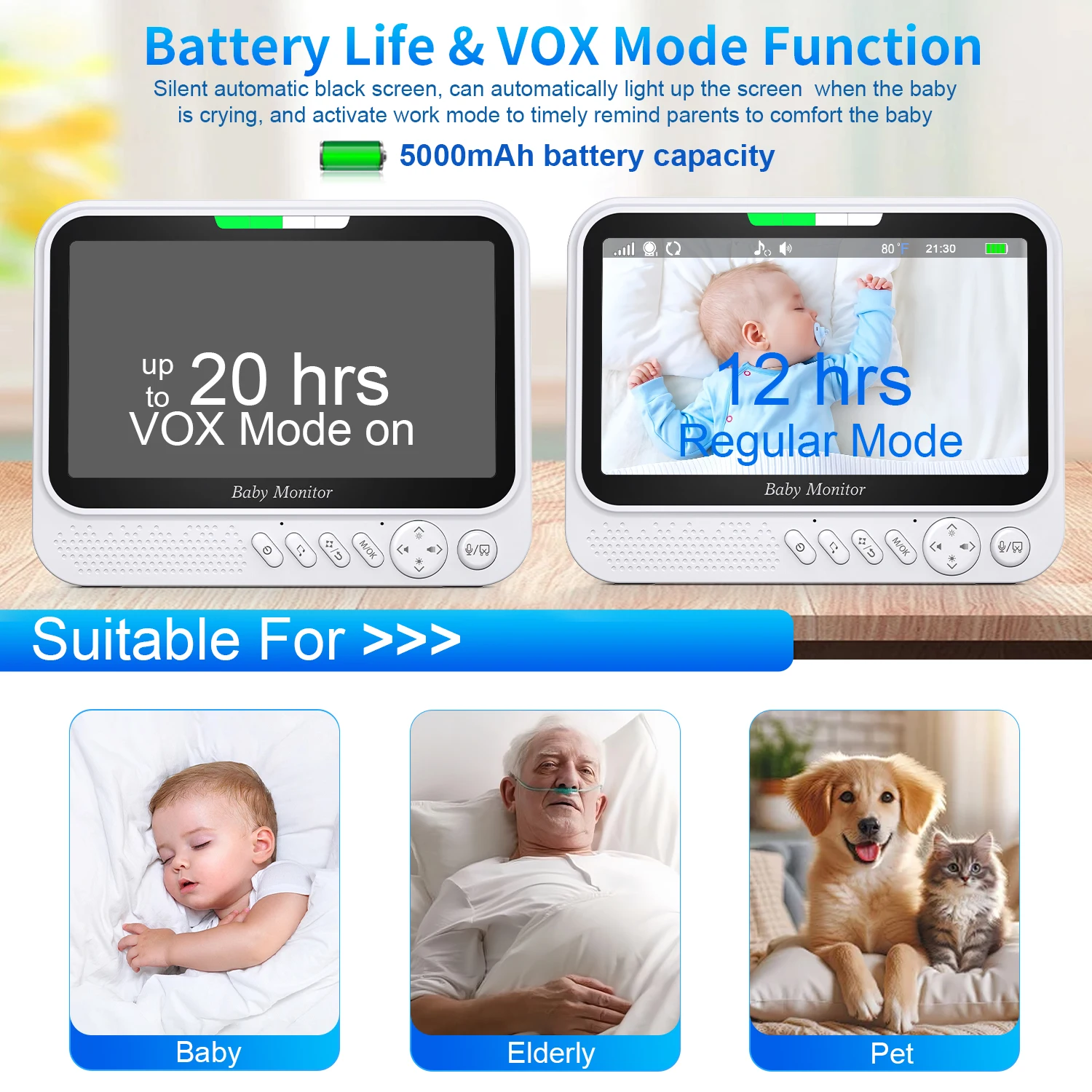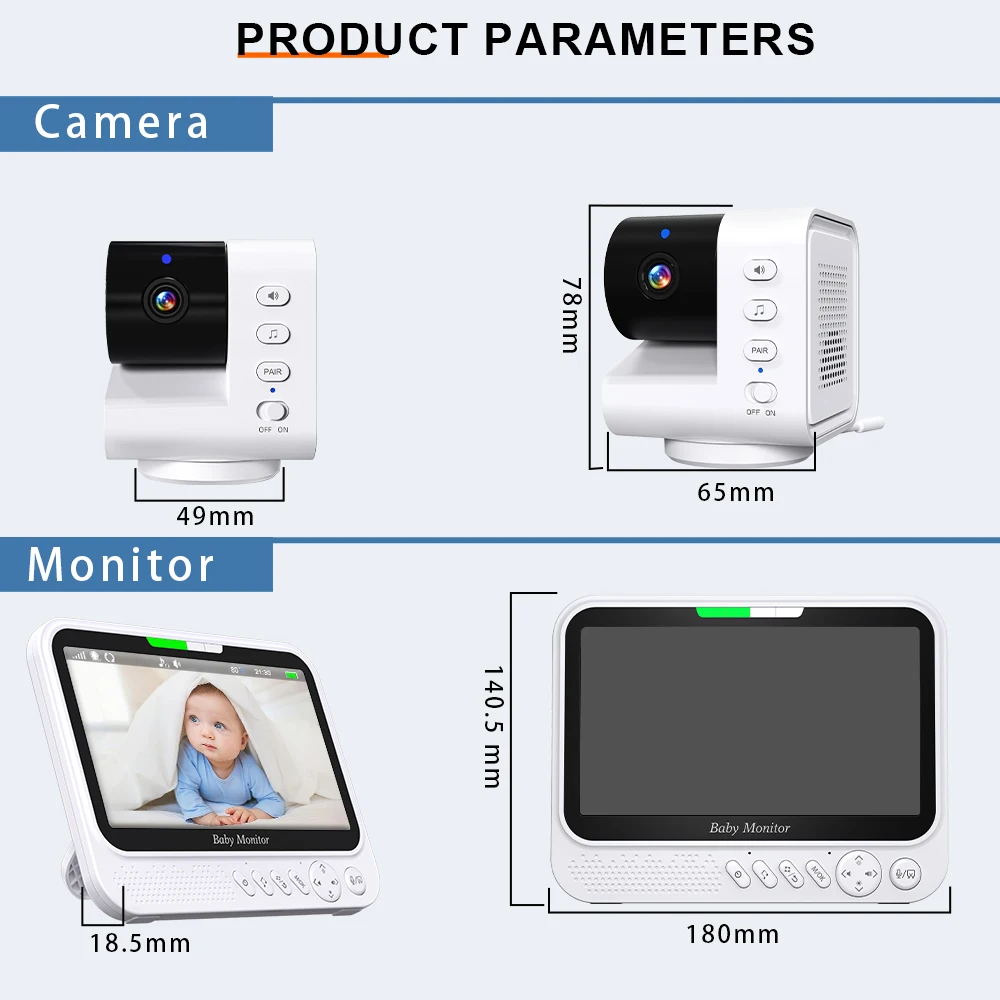 Dieser 7-Zoll-Baby-Monitor bietet umfassende Überwachungsfunktionen für das Kinderzimmer. Ausgestattet mit einer PTZ-Kamera können Sie den Blickwinkel einfach nach oben, unten oder seitlich bewegen, um jeden Bereich des Raumes zu überwachen. Die Kamera verfügt über Nachtsichtfunktion mit Infrarot, sodass Sie auch bei Dunkelheit klare Bilder erhalten, ohne das Baby zu stören.