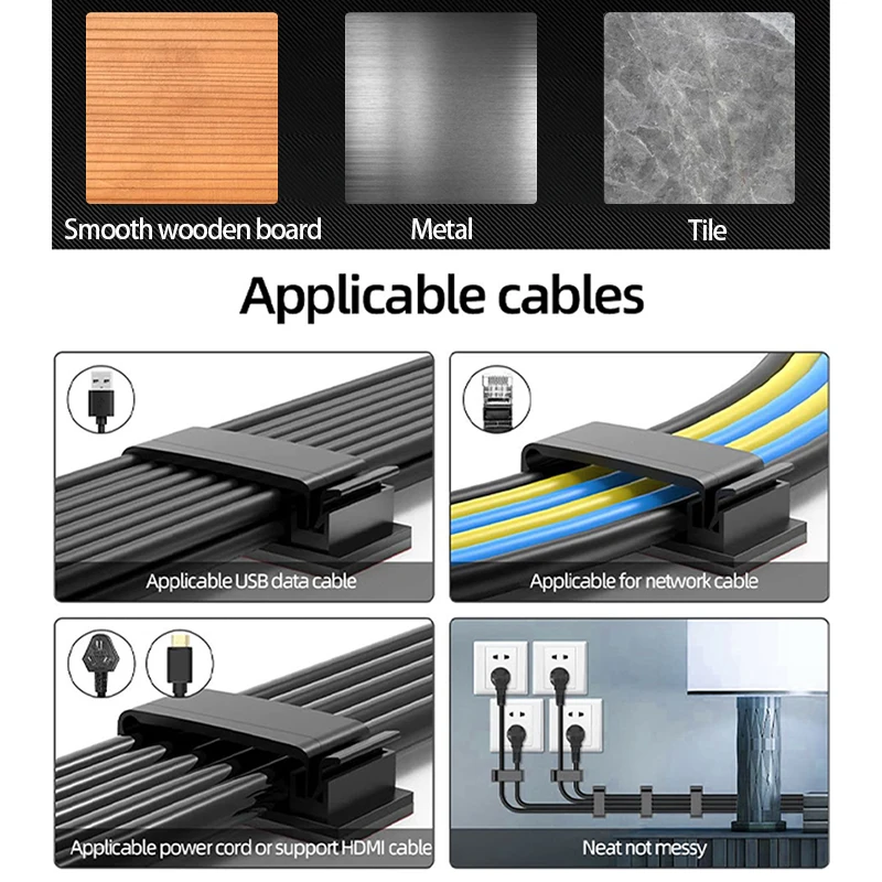 Dieses Set ist ideal für den Einsatz auf Schreibtischen, Regalen, Wänden, Möbeln oder in Heimkino- und Multimedia-Bereichen. Es hilft, Kabelbrüche, Stolperfallen und unschöne Kabelgewirre zu vermeiden und sorgt für langfristige Ordnung.