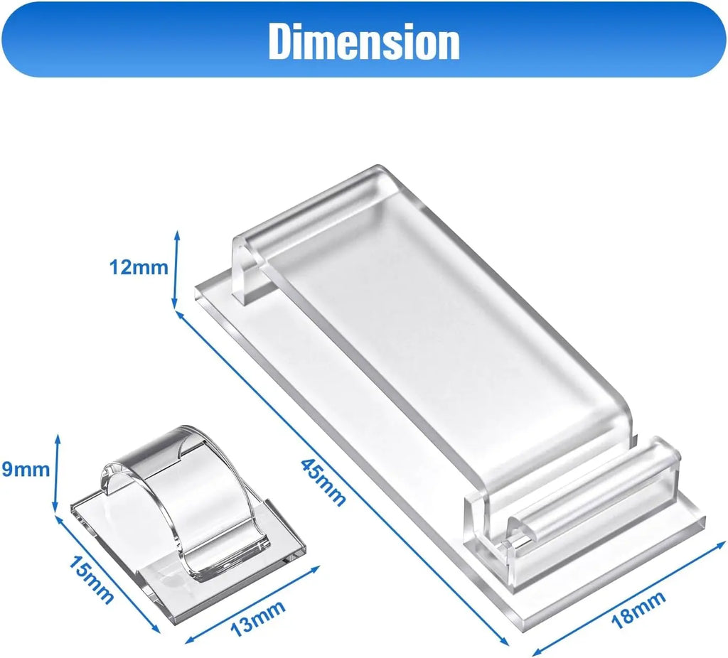Die Kabelhalter bestehen aus robustem Kunststoff und sind in drei Farben erhältlich: Weiß, Schwarz und Transparent. Die großen Halter sind leicht milchig-transparent und passen sich gut an die Umgebung an. Die Installation ist denkbar einfach: Die selbstklebenden Clips werden einfach auf sauberen Oberflächen befestigt, ohne Bohren oder Schrauben. Kabel können einzeln oder in Bündeln sicher fixiert werden.