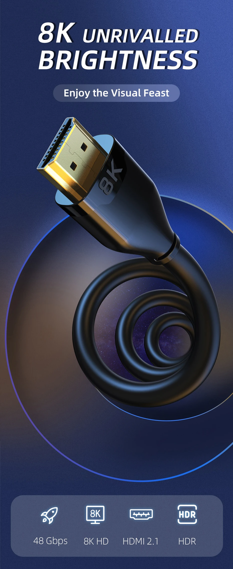 HDMI 2.1 Kabel 8K 60Hz 4K 144Hz Twisted Pair 7,3mm