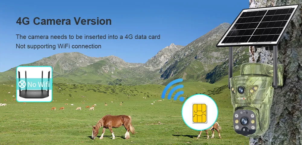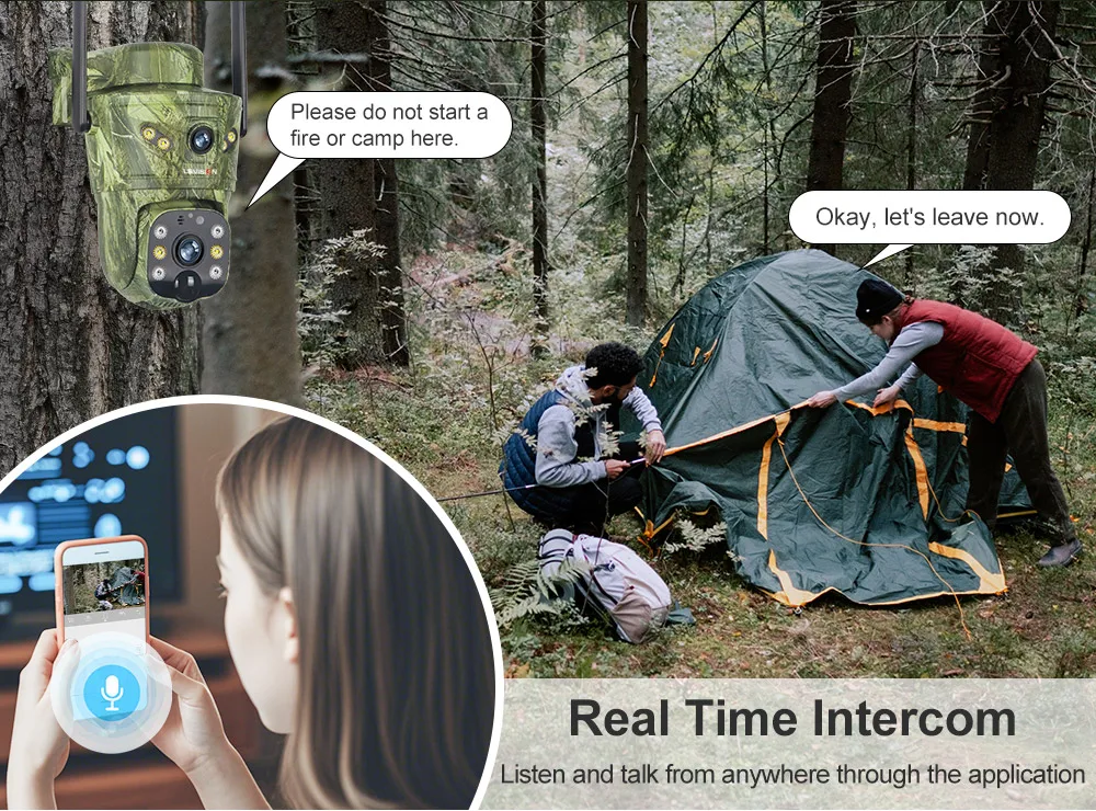 Die Kamera unterstützt sowohl 4G-SIM als auch 2,4-GHz-WLAN für flexible Konnektivität und kann über die V380 Pro App bequem gesteuert und überwacht werden. Das PTZ-System ermöglicht eine Fernsteuerung mit 355° Schwenk- und 100° Neigebereich, wodurch Sie nahezu jeden Winkel erfassen können. Die intelligente PIR- und AI-basierte menschliche Bewegungserkennung löst präzise Alarme aus und bietet eine automatische Verfolgung von Personen, um Fehlalarme zu minimieren.