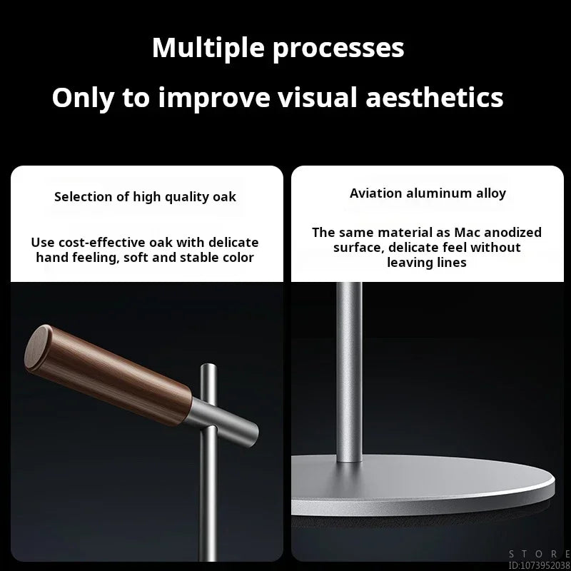 Dieser Aluminium-Kopfhörerhalter vereint Stil und Funktionalität und ist die ideale Lösung für Gamer, Musikliebhaber oder Profis, die Wert auf Ordnung am Arbeitsplatz legen. Hergestellt aus hochwertiger Aluminiumlegierung, Eichenholz und weichem Silikon, bietet der Headset Halter nicht nur eine stabile und rutschfeste Ablage für die meisten auf dem Markt erhältlichen Kopfhörer, sondern schützt diese auch vor Kratzern und Beschädigungen.