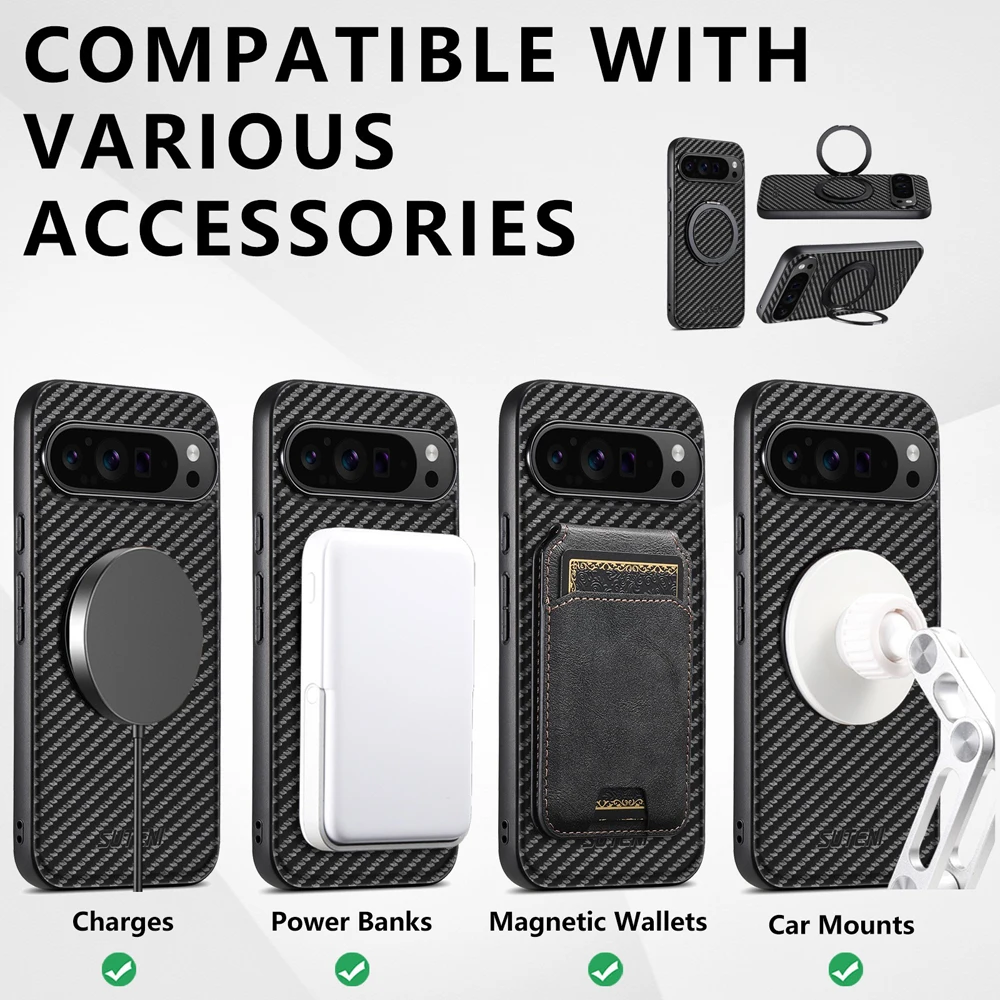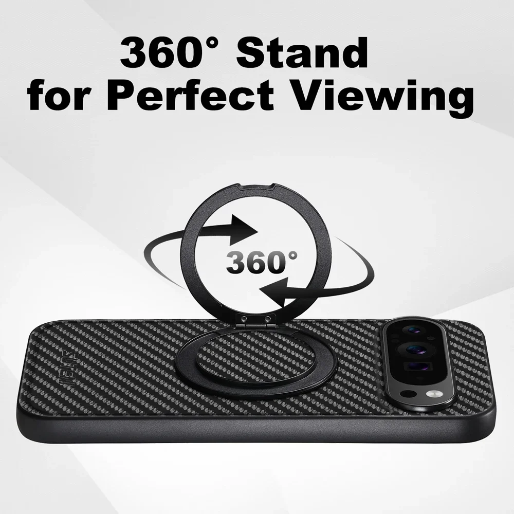 Carbon Fiber Armor Schutzhülle für Google Pixel 10 9 8 – Stoßfestes Hard Cover mit 360° Ringhalter