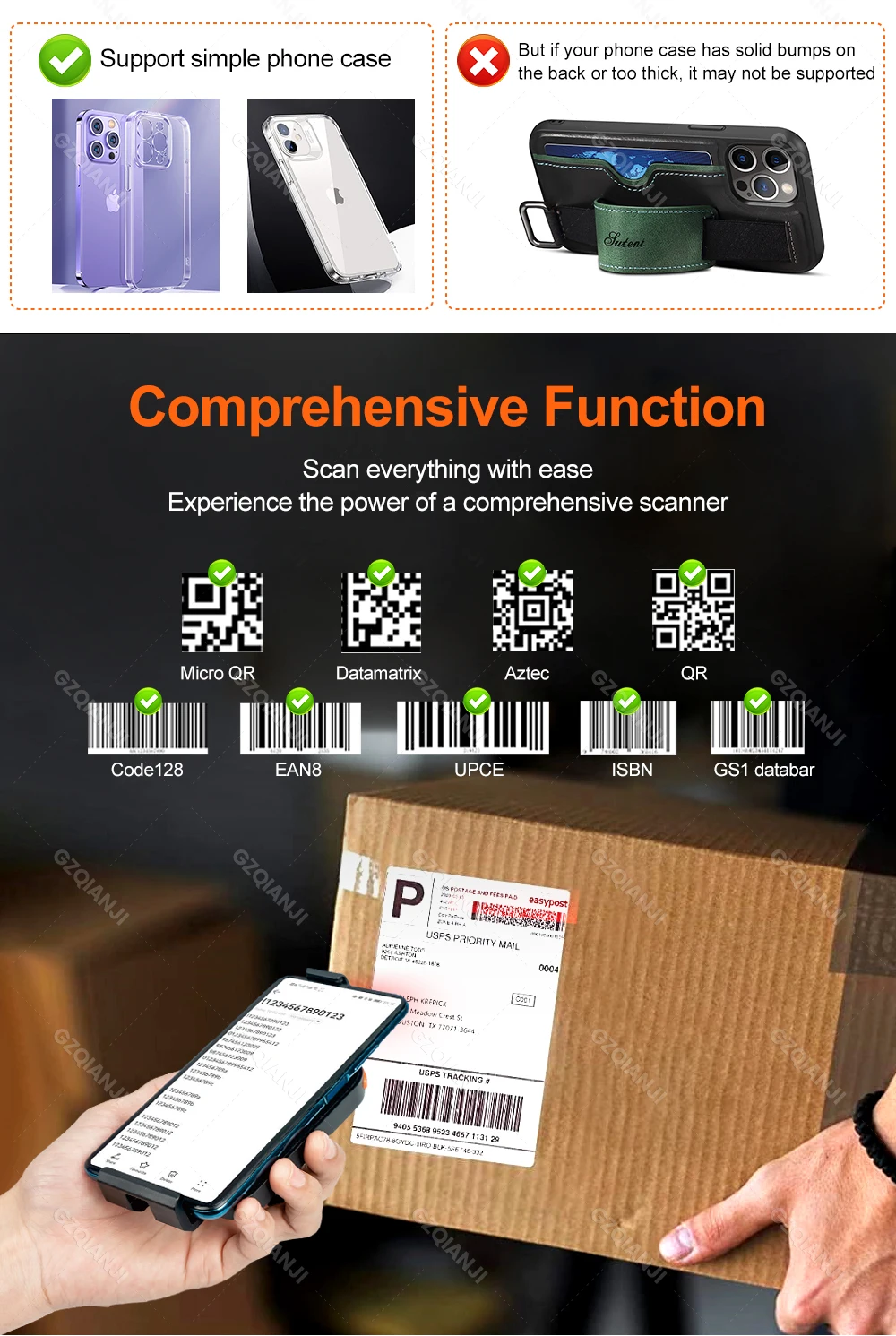 Der Scanner bietet eine Scan-Geschwindigkeit von bis zu 100 Scans pro Sekunde und unterstützt sowohl Android- als auch iOS-Systeme. Er kann PDA-Geräte, Scanning-Pistolen und sogar das Scannen mit Mobiltelefonen ersetzen, was ihn besonders vielseitig und praktisch macht.
