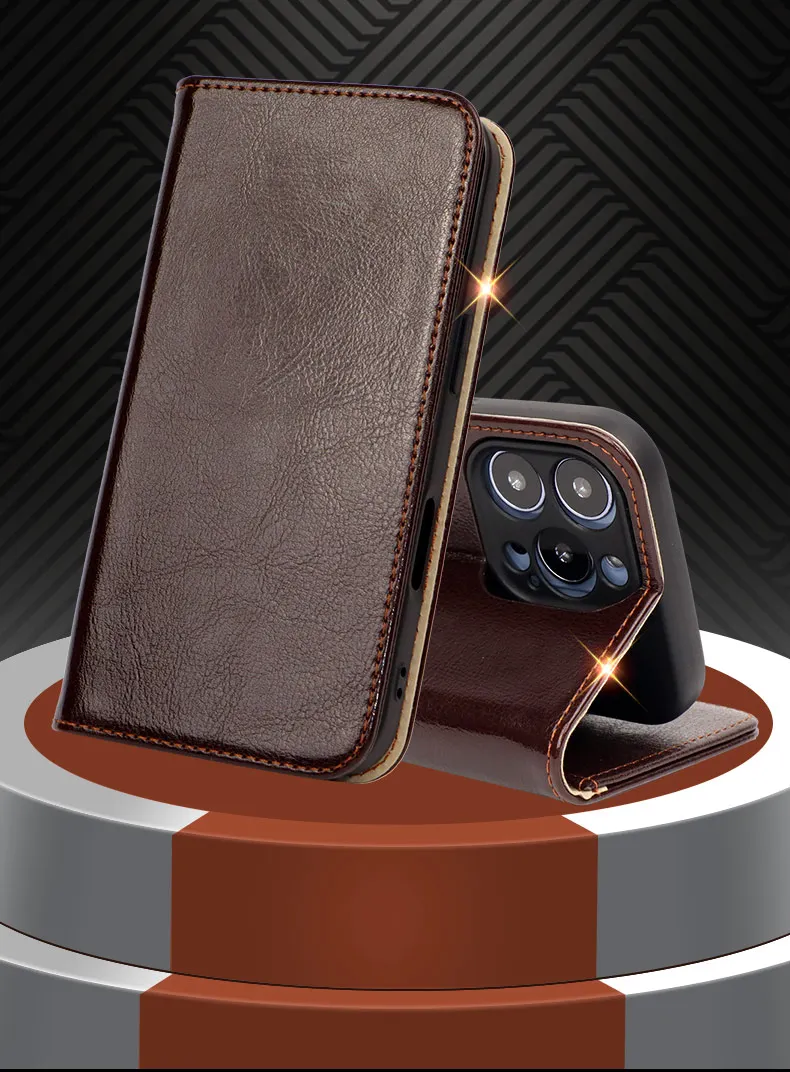 Echtleder Flip Case für iPhone 17 Serie – Mit Kartensteckplatz und Ständer