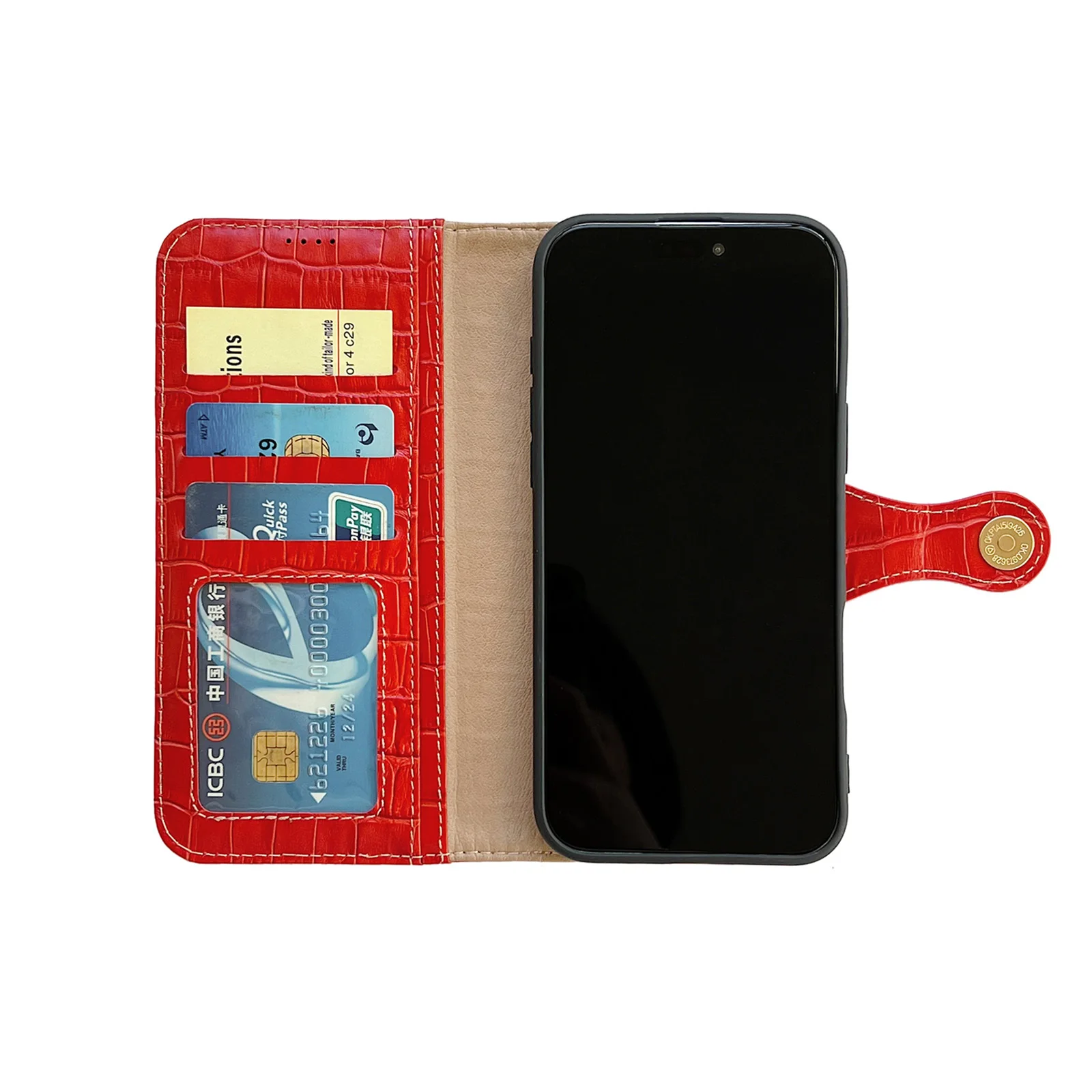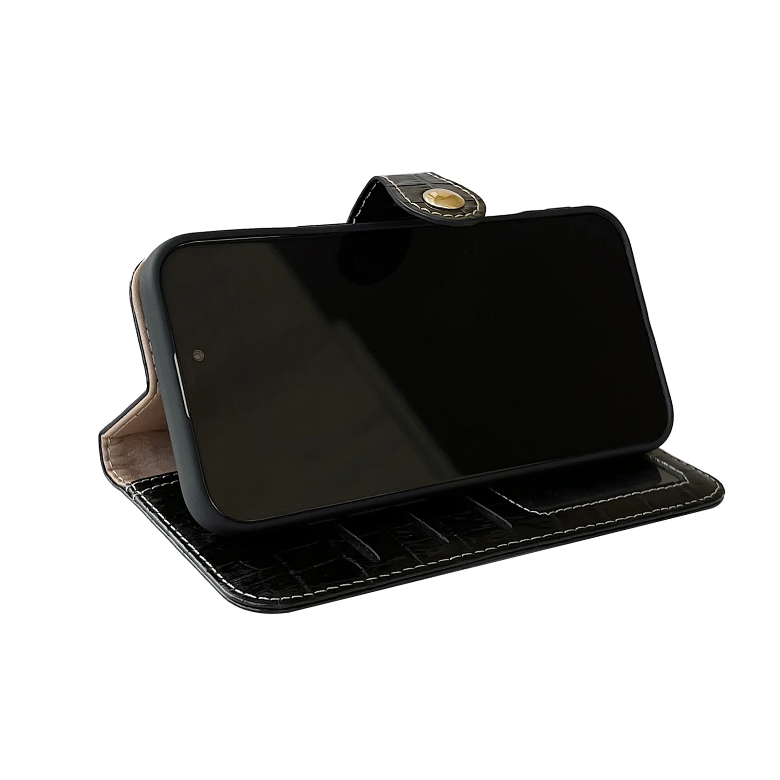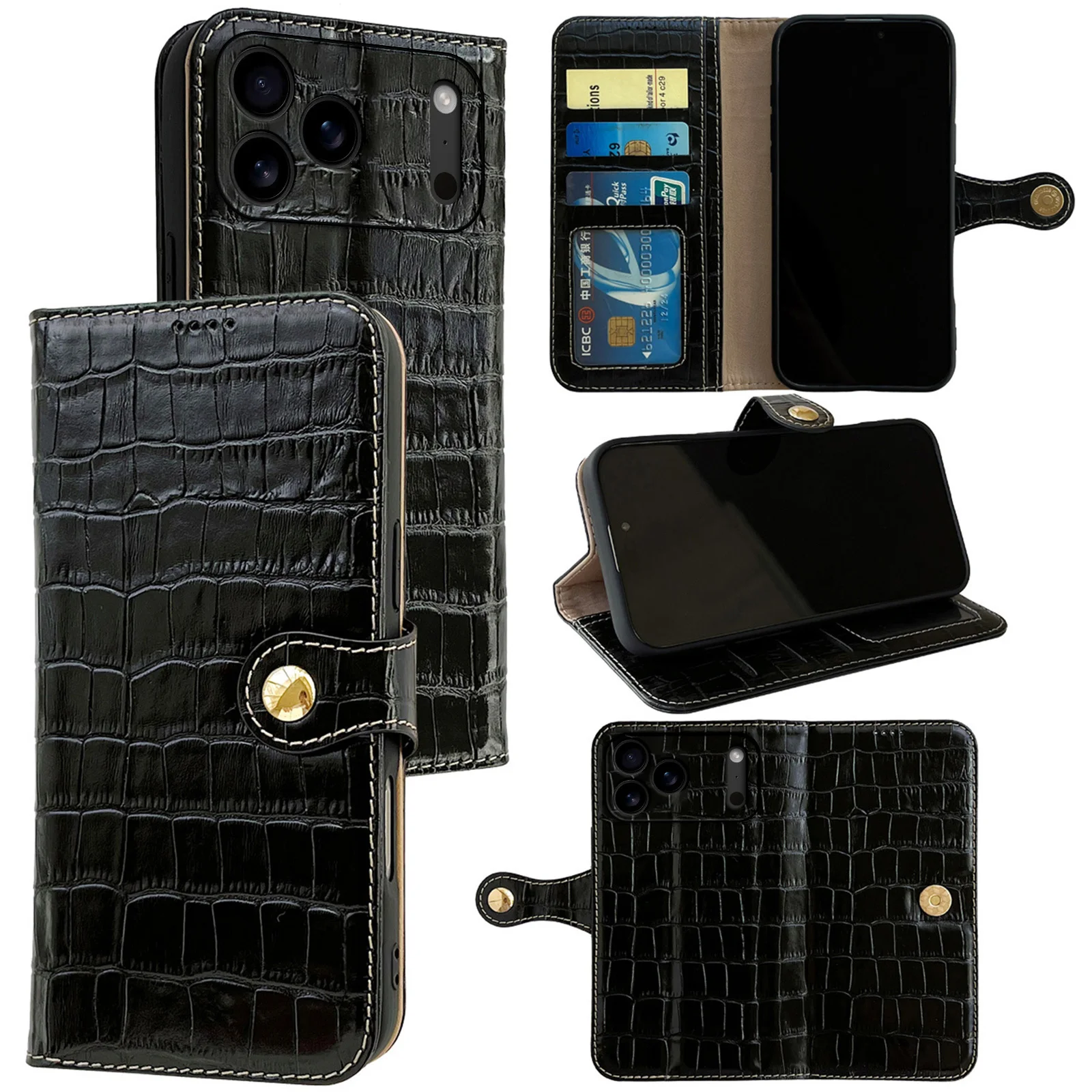 iPhone 17 Pro Max Echtleder Krokodilleder Hülle mit Ständer & Kartenetui – Stoßfest, Anti-Fingerprint, Leicht & Stilvoll