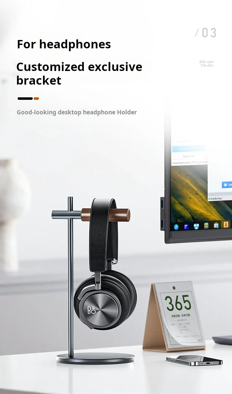 Dieser elegante Kopfhörerhalter aus Aluminiumlegierung bietet eine stabile und langlebige Aufbewahrungslösung für die meisten Kopfhörer auf dem Markt. Der Halter ist so konzipiert, dass er sowohl Gaming-Headsets als auch kabellose oder kabelgebundene Kopfhörer sicher hält. Sein schlichtes, modernes Design passt perfekt auf jeden Schreibtisch und sorgt dafür, dass Ihre Kopfhörer stets griffbereit und gut geschützt sind.