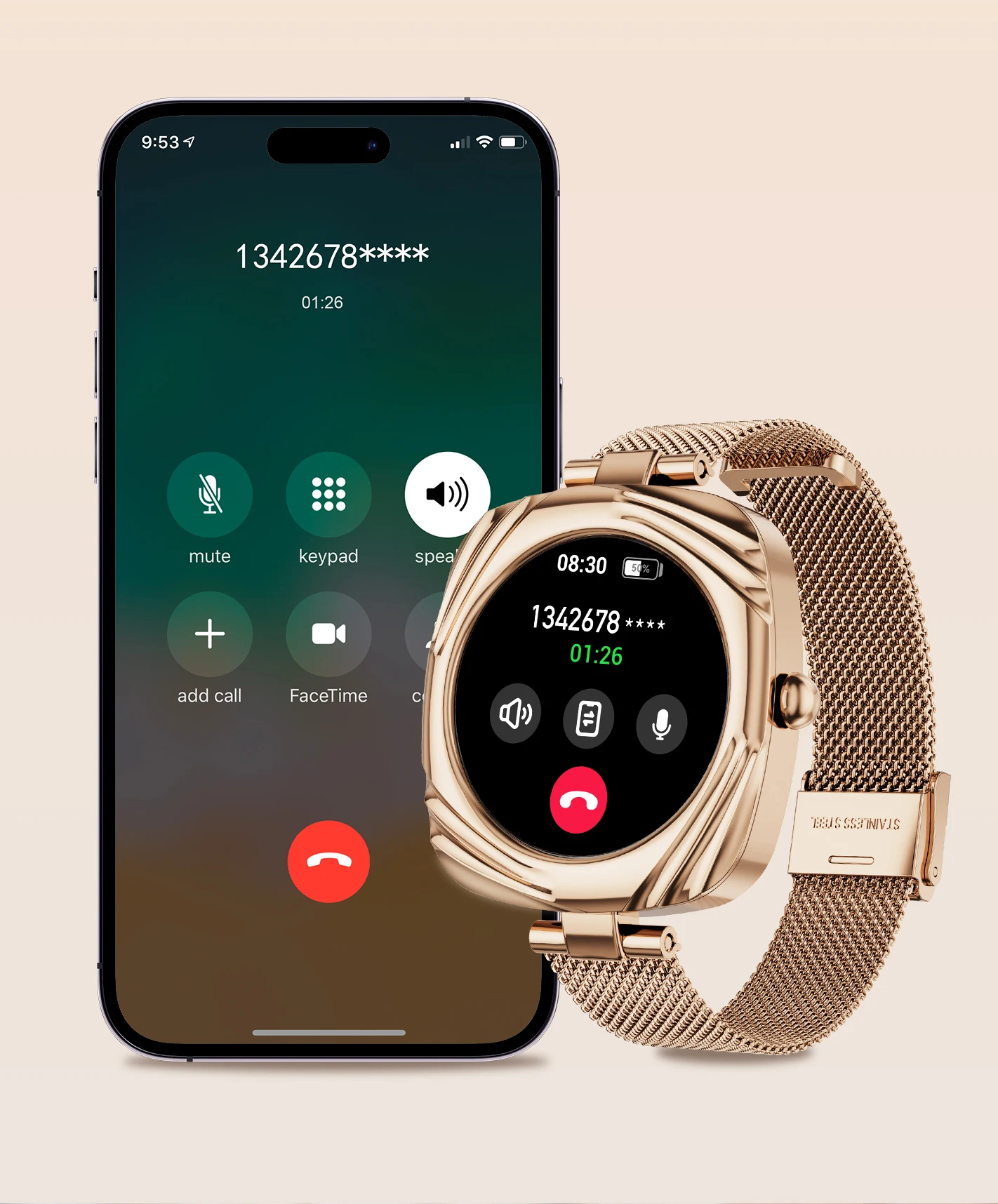Die Uhr unterstützt Bluetooth 5.0 und ermöglicht Anrufe direkt über das Handgelenk. Mit Funktionen wie Schrittzähler, Schlaftracking, Stimmungsanalyse, Nachrichten‑ und Anruferinnerungen, Push‑Benachrichtigungen, Weltzeit, Kalorienzählung, Chronograph, Mondphasenanzeige und Oxymeter deckt sie viele Alltagsszenarien ab.