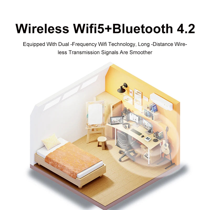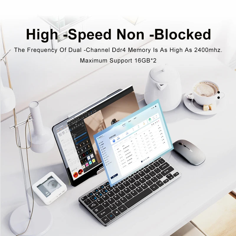 Der Mini-PC verfügt über mindestens 4 GB DDR4 RAM, was für eine flüssige und schnelle Nutzung sorgt. Zudem ist eine M.2 2280 NVMe SSD mit einer Kapazität von mindestens 1,5 TB verbaut, die für schnelle Lese- und Schreibgeschwindigkeiten sowie ausreichend Speicherplatz für Ihre Dateien, Programme und Spiele sorgt. WLAN 5 (WiFi 5) ermöglicht eine stabile und schnelle Internetverbindung ohne störende Kabel.