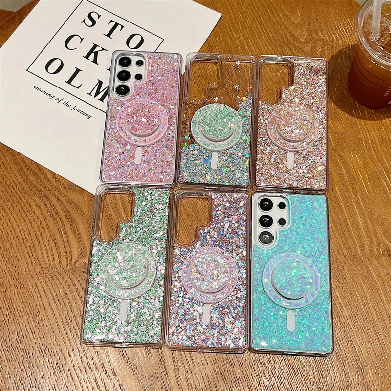Diese luxuriöse Glitzer-Hülle mit Magnetfunktion wurde speziell für das Samsung Galaxy S24 und S25 entwickelt und vereint elegantes Design mit optimalem Schutz. Das halb-umhüllende Case besteht aus hochwertigem Acrylmaterial, das stoßfest, kratzfest und staubabweisend ist. Die glitzernde Flüssigkeit verleiht der Hülle einen funkelnden, edlen Look, der besonders bei modebewussten Frauen beliebt ist.