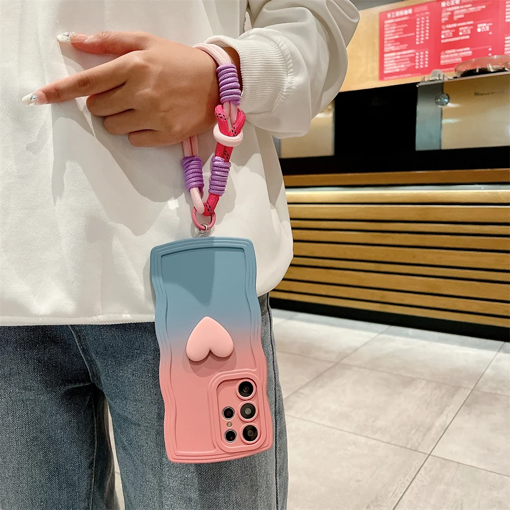 Gradienten Wave Handyhülle mit Herzgriff und Lanyard für Samsung – Stylisch und Stoßfest