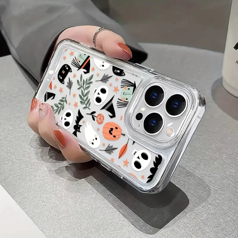 Transparente Halloween-Motiv Handyhülle für Samsung Galaxy S24 Ultra S25 Plus – Weiches Soft Cover mit Grusel-Design