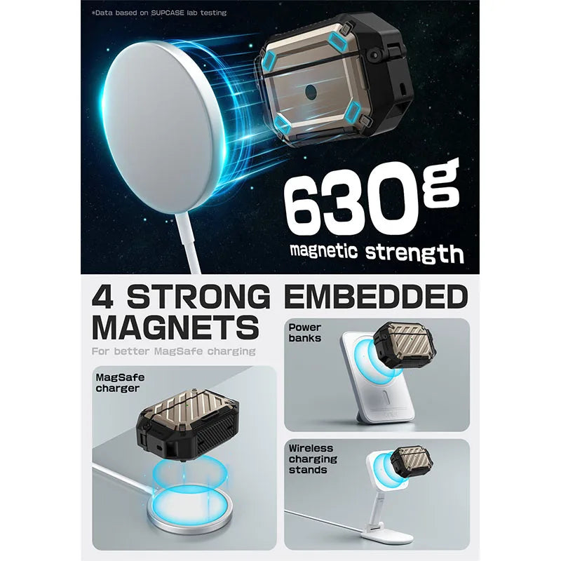 Diese robuste Hülle für die 3. Generation der AirPods Pro ist ideal für alle, die maximale Schutzleistung wollen: Das Gehäuse kombiniert Polycarbonat und thermoplastisches Polyurethan (TPU) und bietet dadurch hervorragenden Schutz vor Stürzen, Kratzern oder Beschädigungen. Mit seinen passgenauen Aussparungen bleibt der Ladeanschluss frei zugänglich und der Ladezustand via LED bleibt sichtbar.