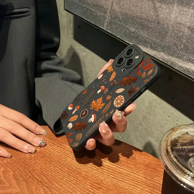 Silikon Handyhülle mit Herbstblätter-Muster für iPhone 17 16 15 14 Pro Max – Weiches und stilvolles Soft Cover im Naturdesign