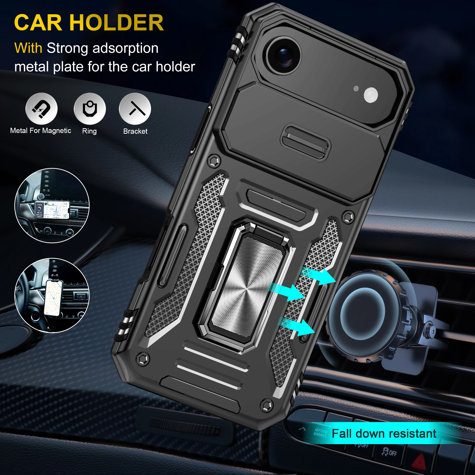 Halbumwickelte Hülle für iPhone 17 Serie – Schockfest mit Ringhalter
