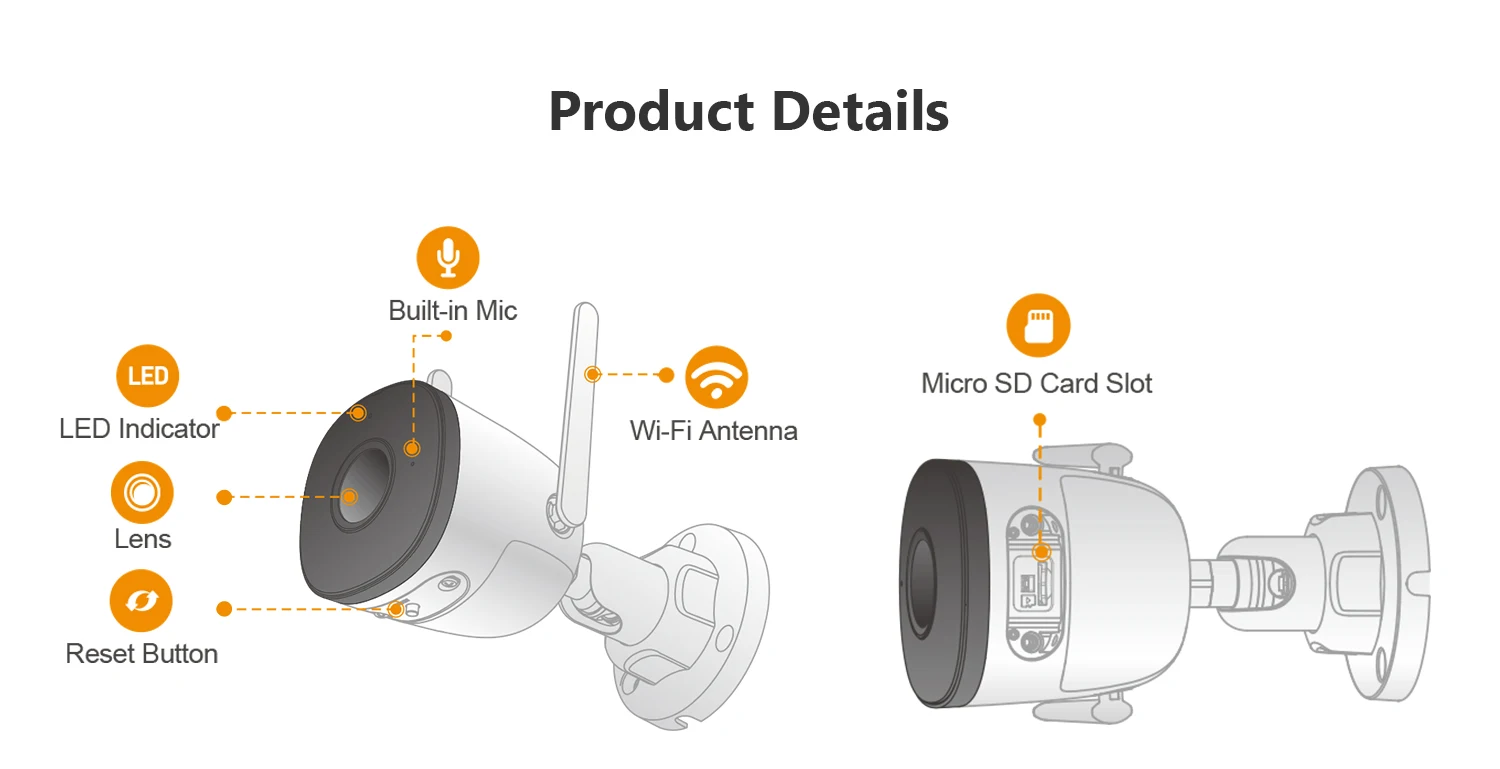 • Speicher: Kein integrierter Speicher, unterstützt NVR, Cloud oder MicroSD bis 256 GB