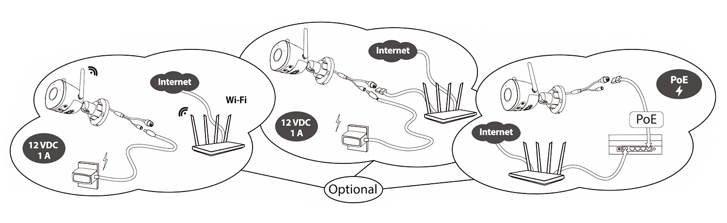 • Anschluss: WLAN (2,4 GHz), DC 12V Stromversorgung