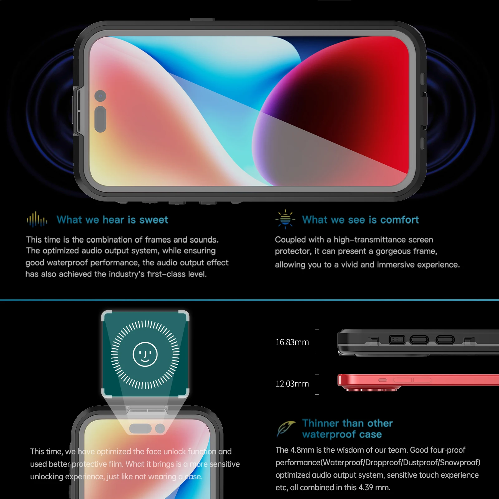 Diese robuste und wasserdichte Handyhülle wurde speziell für die iPhone 17 Serie entwickelt. Sie bietet zuverlässigen Rundumschutz (Full Coverage) durch ihre zweischichtige Bauweise mit eingebautem Displayschutz. Die Hülle schützt Ihr Gerät effektiv vor Wasser, Staub, Stößen und Kratzern – ideal für Outdoor-Aktivitäten, Sport oder den Einsatz im Alltag.