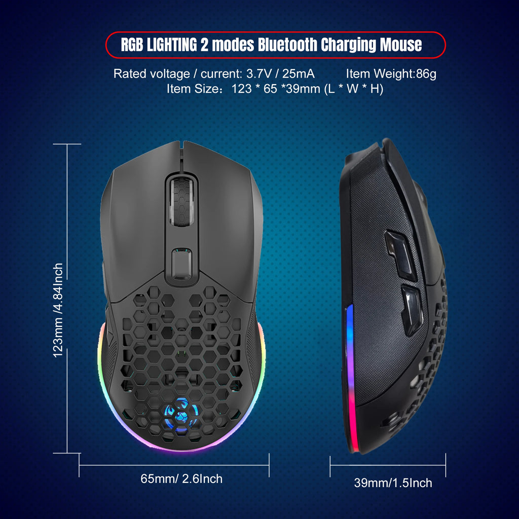 Die Maus verfügt über 14 dynamische RGB-Beleuchtungsmodi, die Sie einfach wechseln können, um Ihren Arbeitsplatz individuell zu gestalten. Der leistungsstarke 600mAh-Akku sorgt für lange Laufzeiten und ein ununterbrochenes Lichterlebnis ohne ständiges Nachladen.