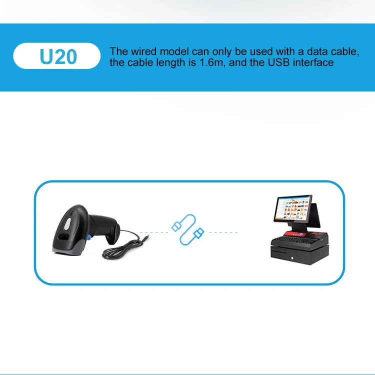 Dieser tragbare, kabellose Barcode-Scanner vom Typ U26 bietet vielfältige Verbindungsmöglichkeiten (USB, Bluetooth, WLAN) und eignet sich ideal für POS, Lager, Paketdienst und Kurierdienste. Ausgestattet mit einem CMOS-Scanmodul und LED-Lichtquelle liefert der Scanner eine optische Auflösung von 600 × 600 Pixeln und kann bis zu 200 Scans pro Sekunde durchführen. Er erfasst Barcodes im Format A4 und ermöglicht dank globaler Belichtung zuverlässige Erkennung auch unter schwierigen Lichtbedingungen.