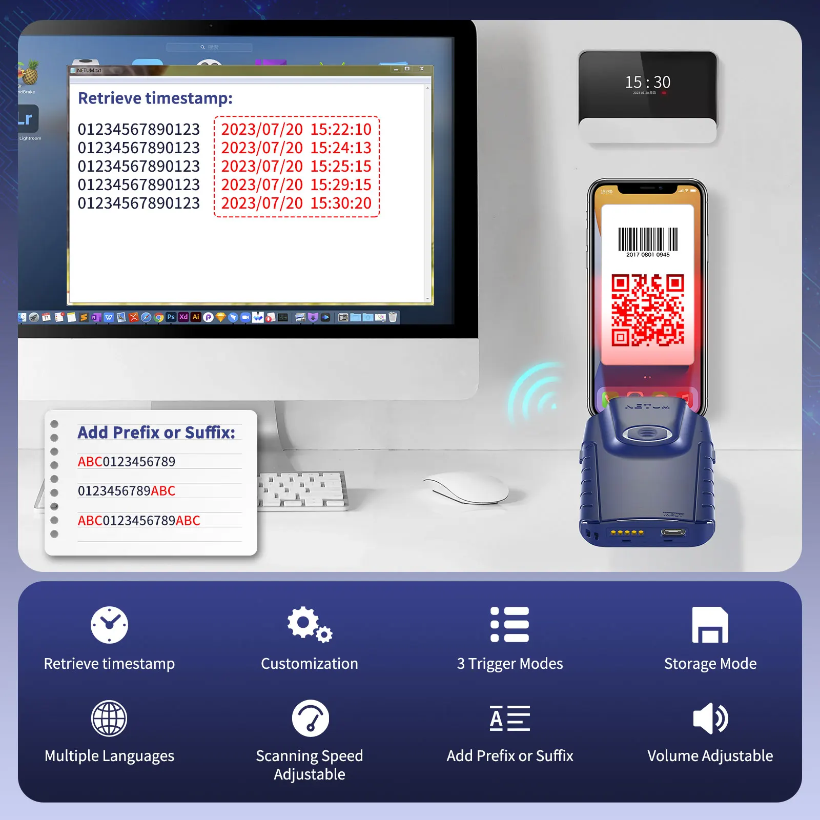 Tragbarer Bluetooth 2D Barcode-Scanner für Lager, POS & Mobilgeräte