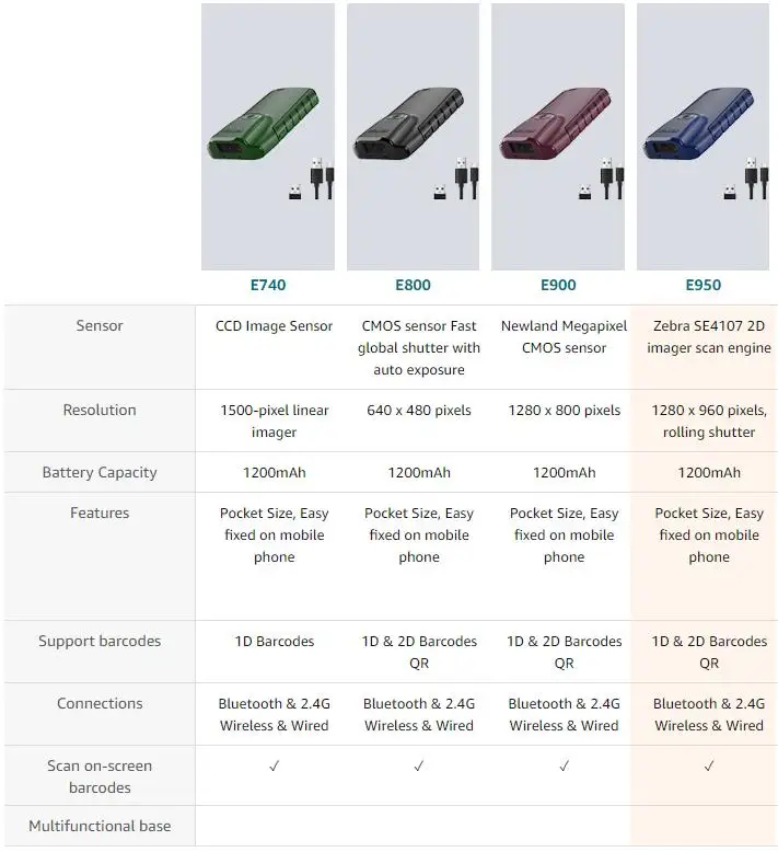 Die E-Serie nutzt dieselbe leistungsfähige Area-Imaging-Technologie wie große, stationäre Scanner und erzielt damit erstklassige Scanergebnisse – unabhängig davon, ob es sich um gedruckte Barcodes oder digitale Coupons, E-Tickets, mobile Geldbörsen oder Kundenkarten handelt.