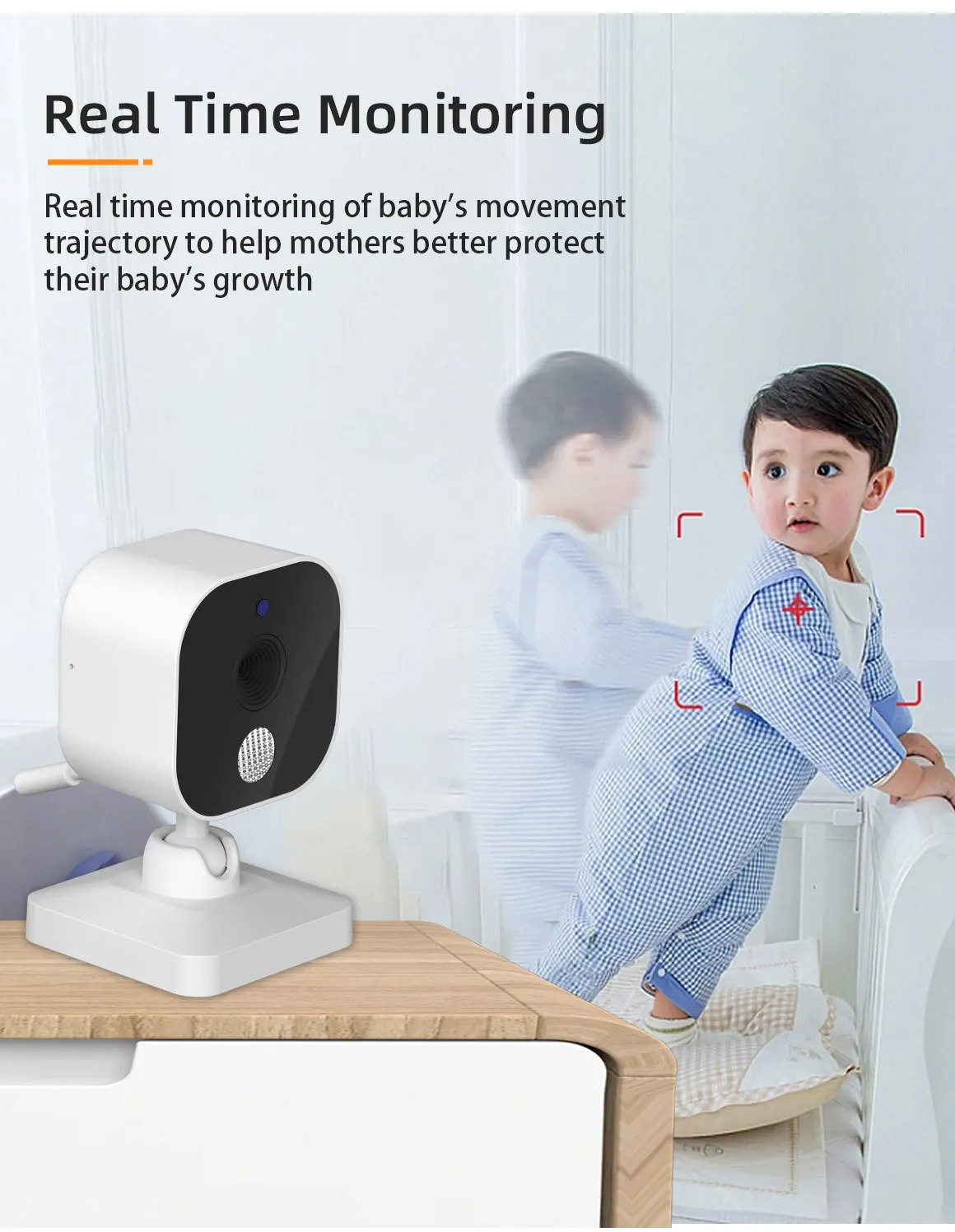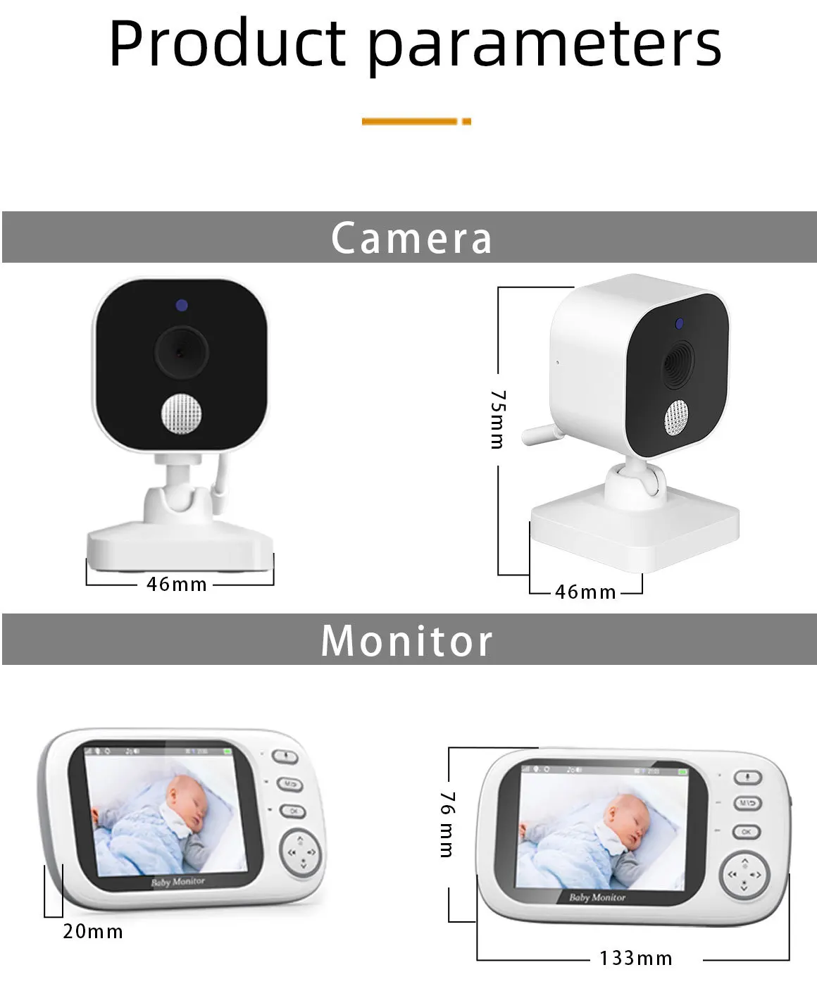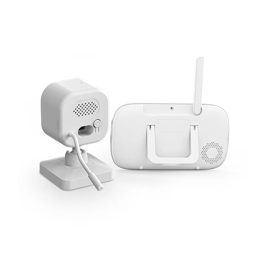Die Kamera nutzt einen CMOS-Sensor für stabile und klare Bildqualität und ist mit Infrarot ausgestattet, sodass auch nachts eine Sicht auf das Baby möglich ist. Das Babyphone ist kompakt, tragbar und leicht zu installieren. Die Stromversorgung erfolgt über Netzadapter (EU, US, AU, UK), während das Gerät kabellos arbeitet.