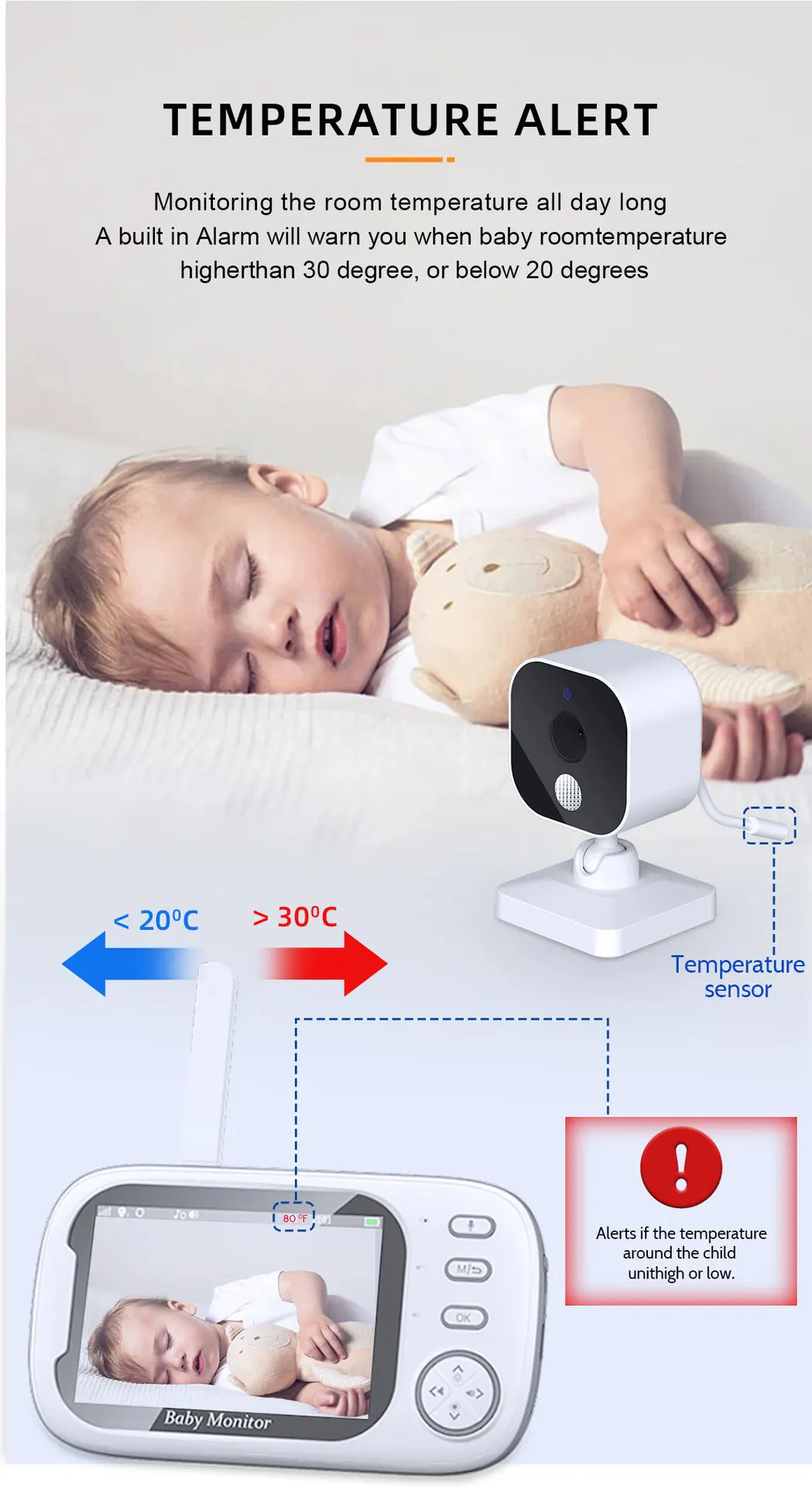 Kabelloses 3,5-Zoll Babyphone 720P mit VOX und Temperatur