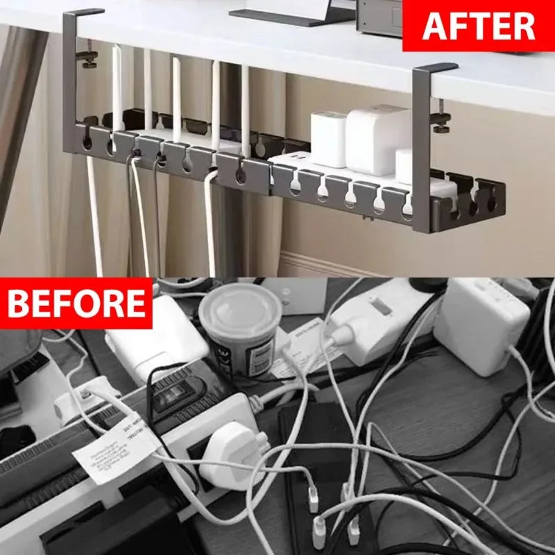 Dieses Kabelmanagement-Tablett unter dem Schreibtisch bietet eine einfache und sichere Möglichkeit, Kabel sauber und organisiert zu verstauen. Es ist besonders für Home-Office, Büros oder Arbeitszimmer geeignet. Das Tablett kann ohne Bohren montiert werden, sodass Wände oder Möbel nicht beschädigt werden. Hergestellt aus robustem Eisen, trägt es auch schwere Steckdosenleisten und mehrere Kabel gleichzeitig zuverlässig.