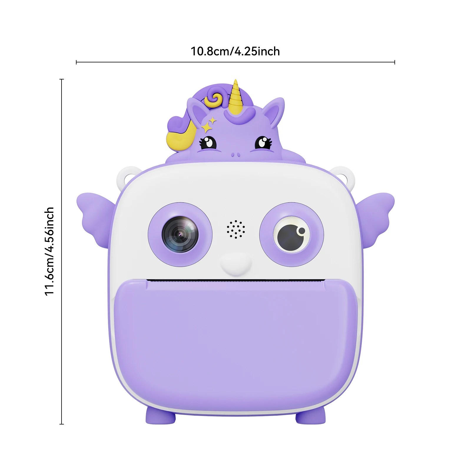 Die Kamera verfügt über eine Sofortdruckfunktion, die Schwarzweißfotos schnell druckt, während farbige Bilder gleichzeitig auf der SD-Karte gespeichert werden. Zwei Druckmodi (Graustufen- und Punktmatrix) und drei Farbtiefen-Druckoptionen bieten Kindern kreative Möglichkeiten. Die Thermodrucktechnologie ist frei von Toner und BPA, sodass sie für Kinder sicher verwendet werden kann.