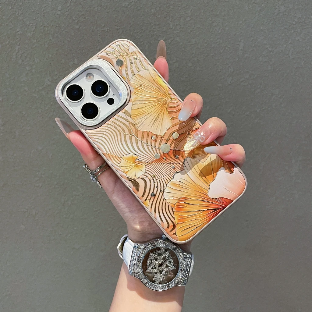 Kunstvolle Ginkgo Blatt Hülle mit Halter für Smartphone 17 – robust und elegant