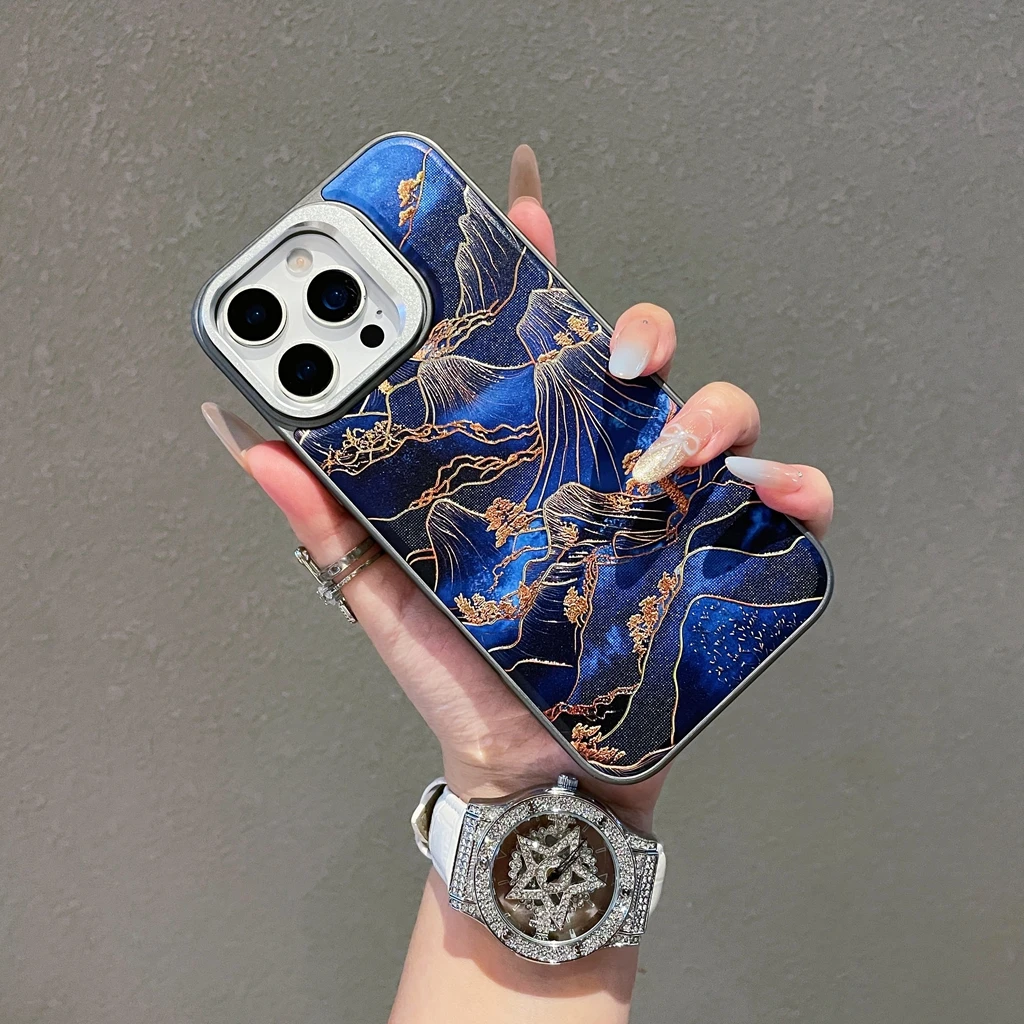 Die semi-transparente Oberfläche hebt das kunstvolle vergoldete Ginkgo-Motiv hervor, ohne das schlanke Design des iPhones zu verdecken. Das Design verbindet Ästhetik mit Funktionalität, da die Hülle auch mit einem integrierten Halter ausgestattet ist, der das bequeme Halten des Telefons oder das Ansehen von Videos erleichtert.