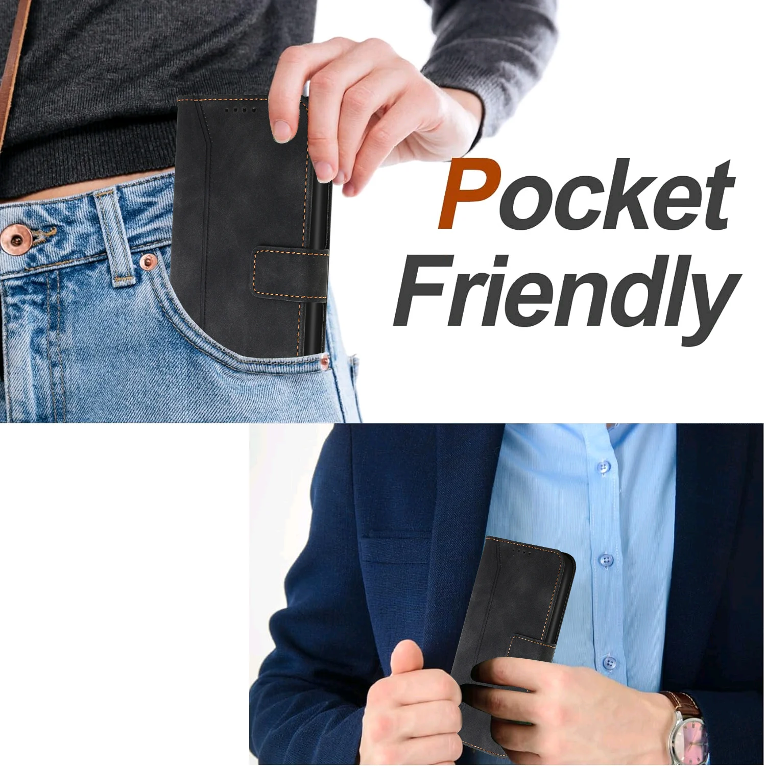 Hergestellt aus hochwertigem PU-Leder mit weichem TPU-Innenrahmen bietet die Hülle vollständigen Rundumschutz gegen Kratzer, Staub, Fingerabdrücke und Stöße. Dank des magnetischen Verschlusses bleibt die Hülle sicher geschlossen, während das integrierte Kartenfach und Geldscheinfach das Mitnehmen von Portemonnaie überflüssig macht.