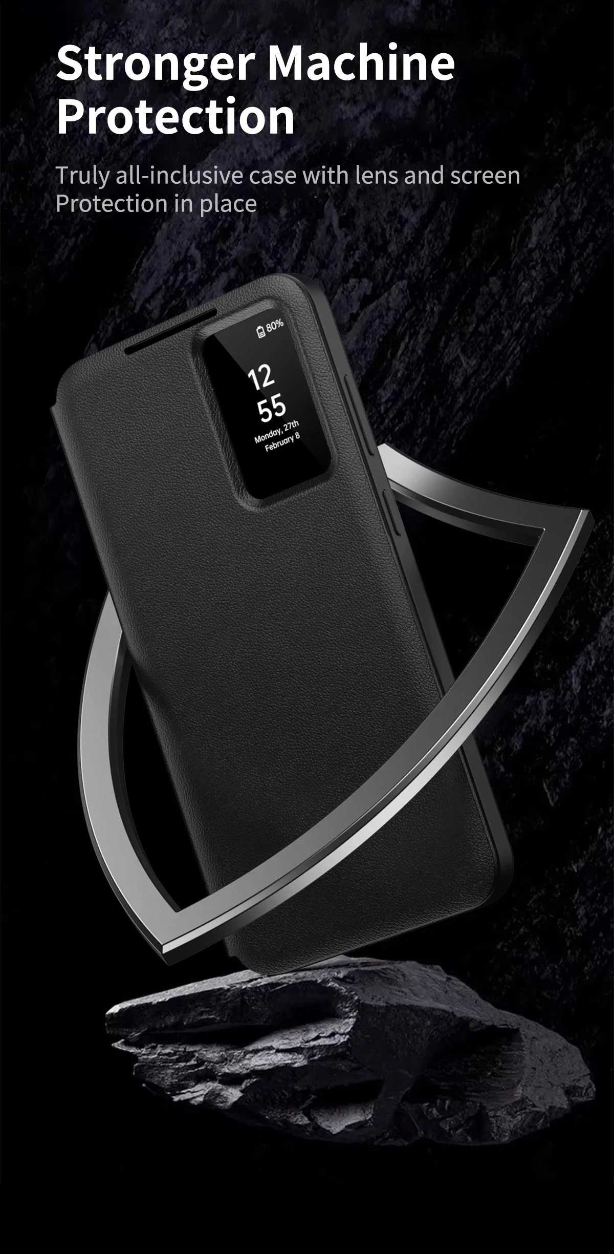 Diese hochwertige Brieftaschen-Hülle aus künstlichem Leder schützt Ihr Smartphone zuverlässig vor Fingerabdrücken, Kratzern, Staub, Stößen und versehentlichen Stürzen. Das schlichte Design sorgt für ein elegantes Erscheinungsbild und macht die Hülle zum idealen Begleiter für den Alltag.
