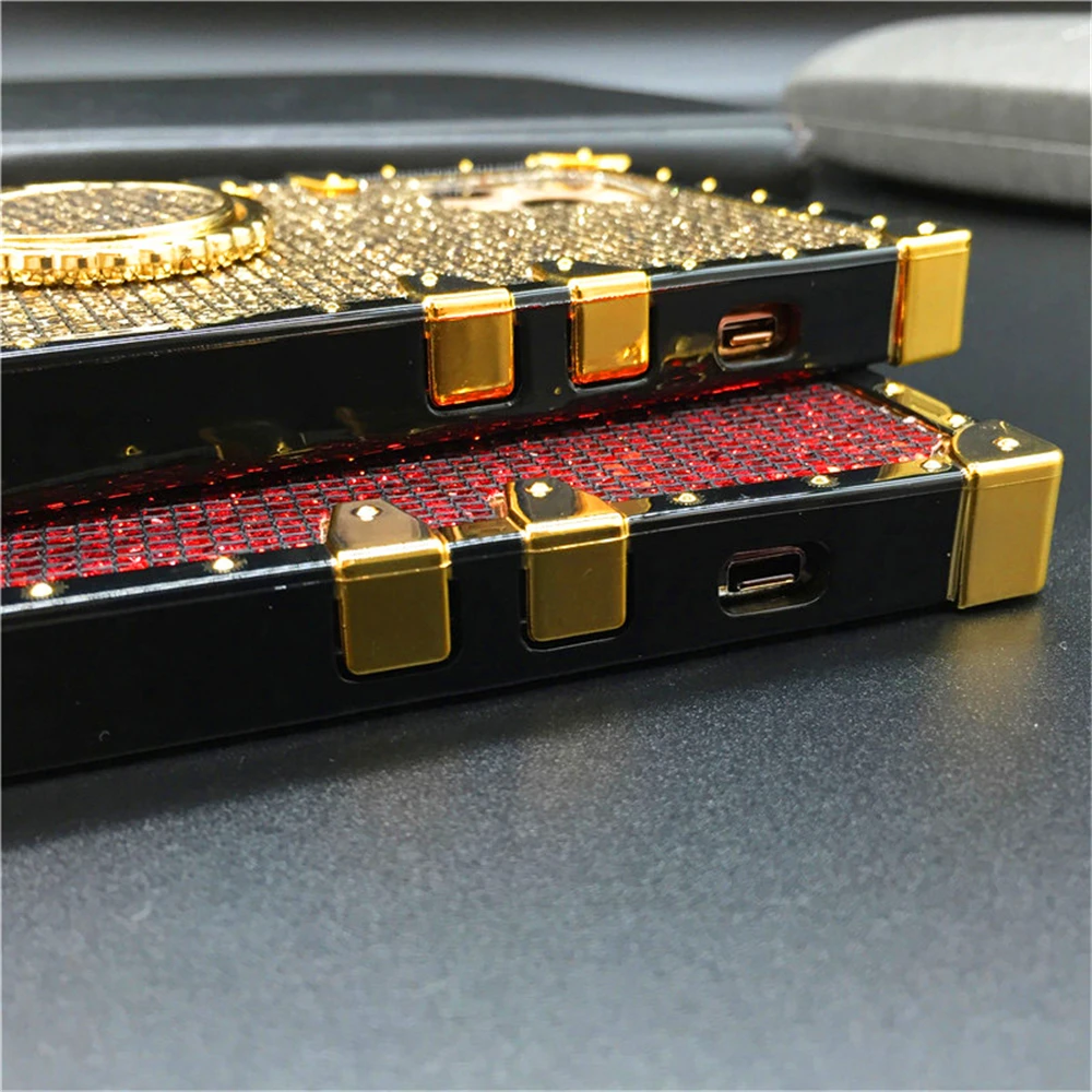 Das Gitter- und Glitzermuster verleiht dem Smartphone ein edles, modernes Aussehen, perfekt für Damen, die Luxus und Stil schätzen. Der integrierte Ringständer sorgt für sicheres Halten beim Fotografieren, Schreiben oder Ansehen von Videos, während das Anti-Rutsch-Design zusätzlichen Komfort bietet.