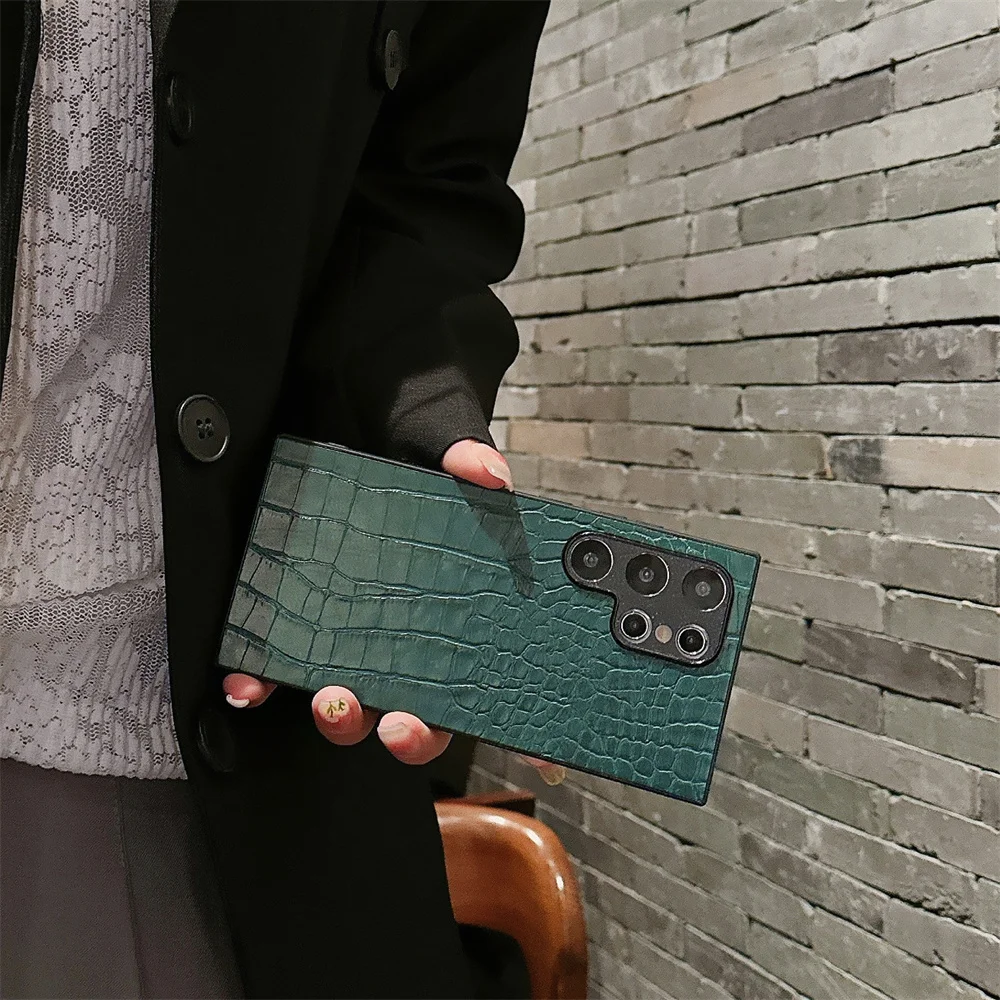 S24 Ultra-Hülle mit Leoparden-Krokodildruck für Samsung Galaxy S24 S23 S22 S21 S20 Ultra Plus S20 FE Note 20 Ultra 10 Pro 9 – Stilvolles Luxus Cover