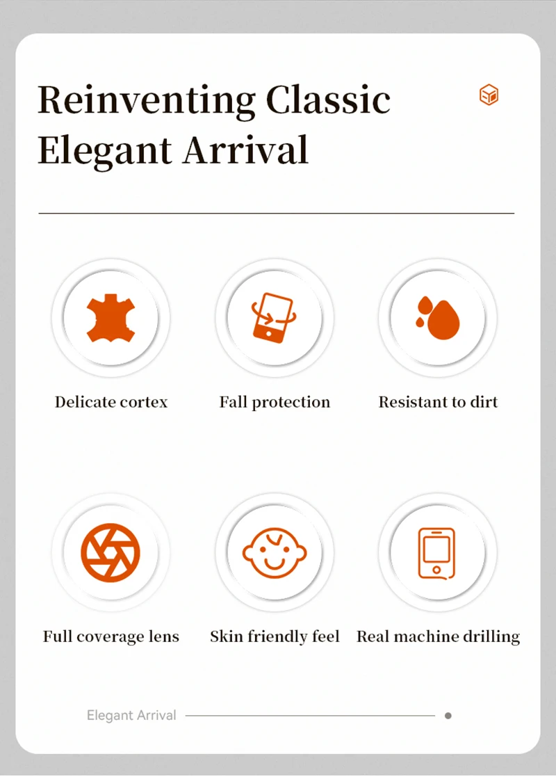 Die Hülle ist aus robustem Leder gefertigt und verfügt über ein modernes, vielseitiges Design: wahlweise schlicht, transparent, geometrisch oder mit inspirierenden Zitaten und Textilstruktur. Sie ist nicht nur optisch ansprechend, sondern auch funktional – mit einer Spiegelfolie, die als Schminkspiegel oder zum schnellen Check genutzt werden kann.
