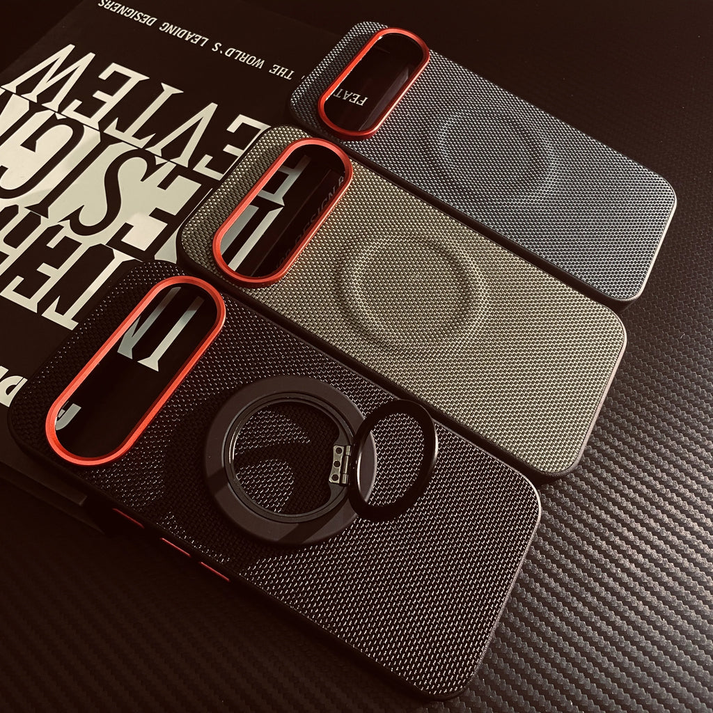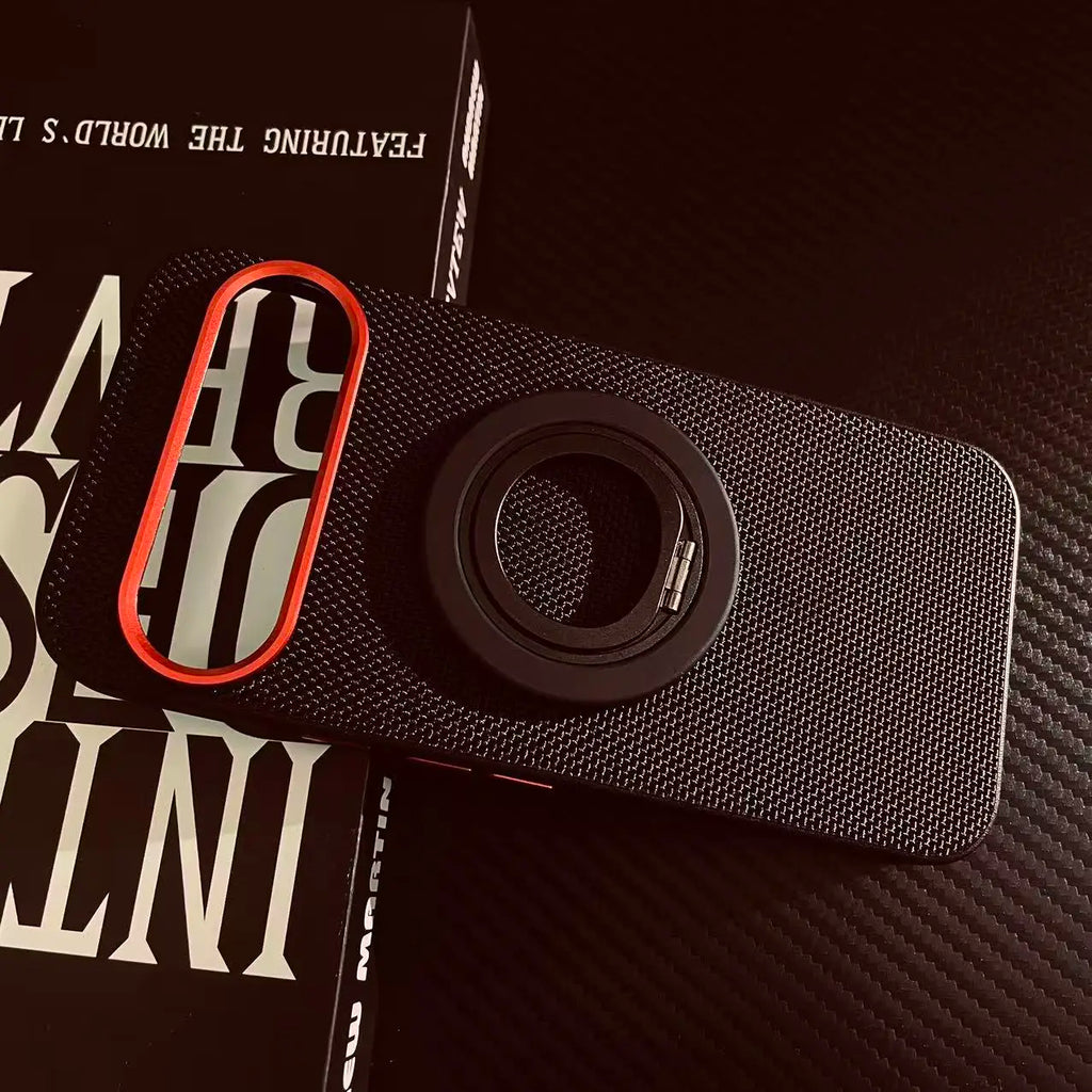 Die matte Oberfläche schützt vor Fingerabdrücken und Blendlicht, während die rutschfeste Struktur ein angenehmes und sicheres Griffgefühl bietet. Die Hülle deckt die Rückseite und Seiten des Smartphones ab und lässt alle Anschlüsse, Kameras und Tasten vollständig zugänglich. Der integrierte Halter erlaubt das bequeme Aufstellen des Geräts zum Anschauen von Videos oder Videoanrufen.
