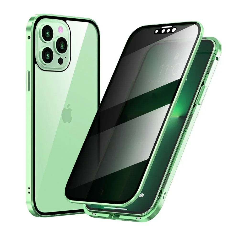 Diese doppelseitige Magnet-Handyhülle aus gehärtetem Glas und Metallic-Rahmen bietet umfassenden 360-Grad-Schutz für alle Apple iPhone-Modelle. Das schlanke, leichte Design sorgt dafür, dass Ihr Smartphone stilvoll und handlich bleibt, während die robuste Metallrahmenkonstruktion Stöße, Kratzer und Staub zuverlässig abwehrt. Das doppelseitige Glas schützt sowohl Vorder- als auch Rückseite und unterstützt kabelloses Laden, ohne dass die Hülle entfernt werden muss.