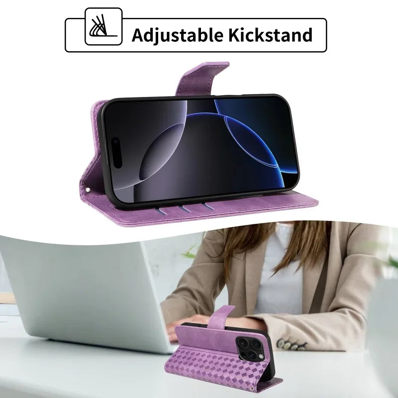 Das schlanke, geometrische Design verleiht der Hülle ein modernes und minimalistisches Aussehen. Die magnetische Klappe sorgt dafür, dass das Gerät sicher verschlossen bleibt, während Anti-Fingerprint und Anti-Scratch Eigenschaften das Telefon sauber und kratzfrei halten. Die Dual-Schicht-Konstruktion bietet zusätzlichen Schutz vor Stößen und Stürzen.