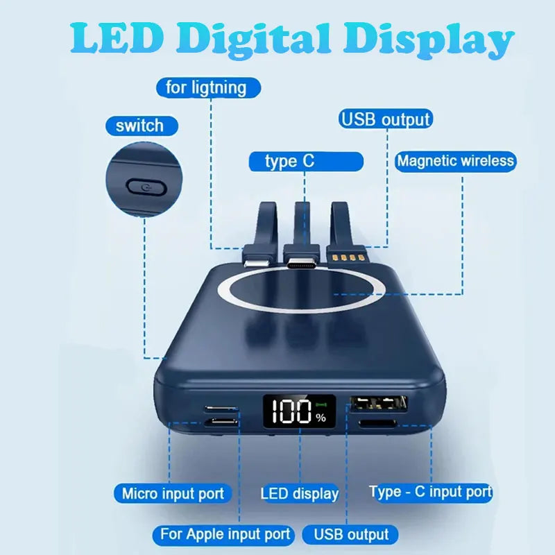 RANWOMEN 20000mAh ultradünne Powerbank mit MagSafe, integriertem Kabel & LED-Anzeige – Für iPhone & Android